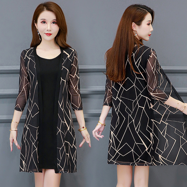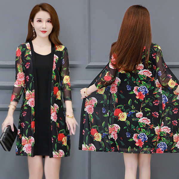 봄과 여름 새로운 플러스 사이즈 여성의 외부 레이스 태양 보호 의류 중간 길이 숄 탑 메쉬 가디건 얇은 코트스토어 가기