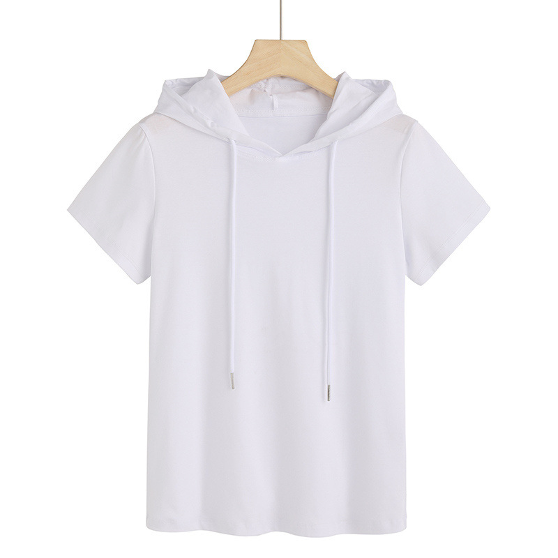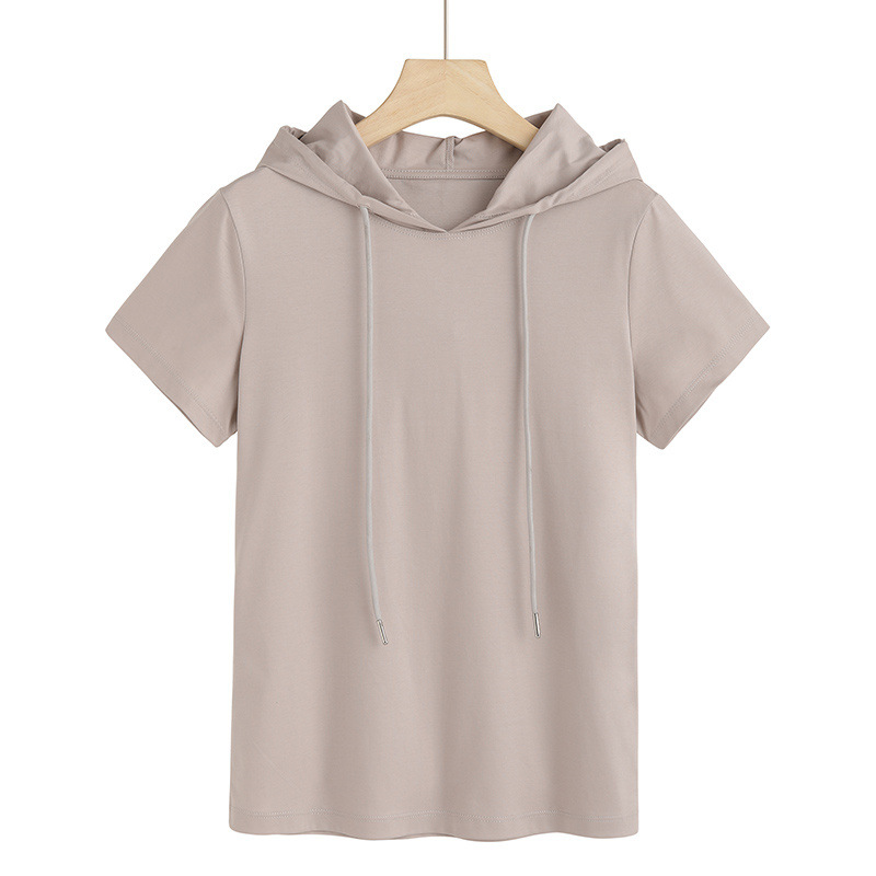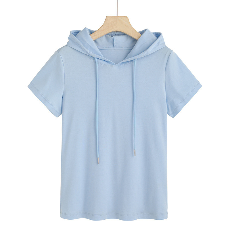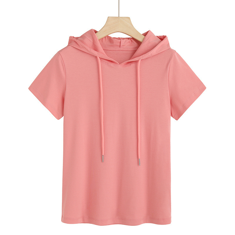 슈퍼 온천과 여름 패션 반팔 세대 후드 티셔츠 여성 80 머서라이즈드 면 기질 6736