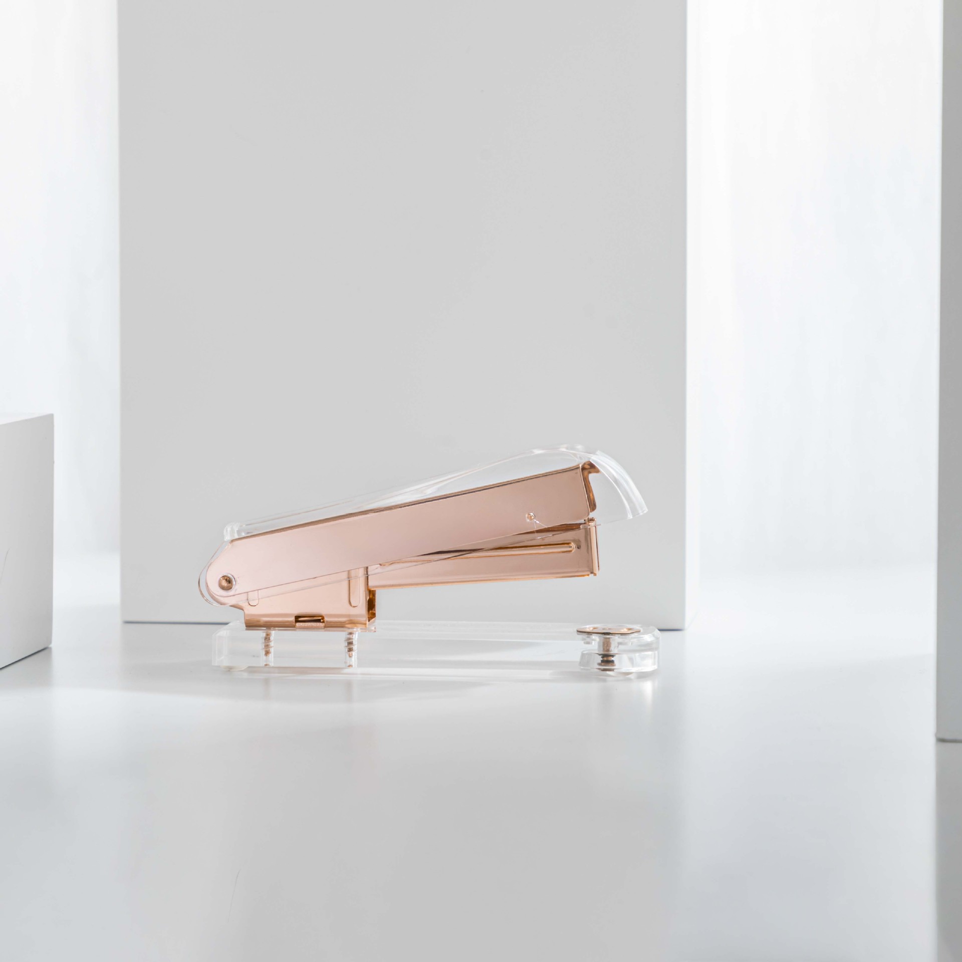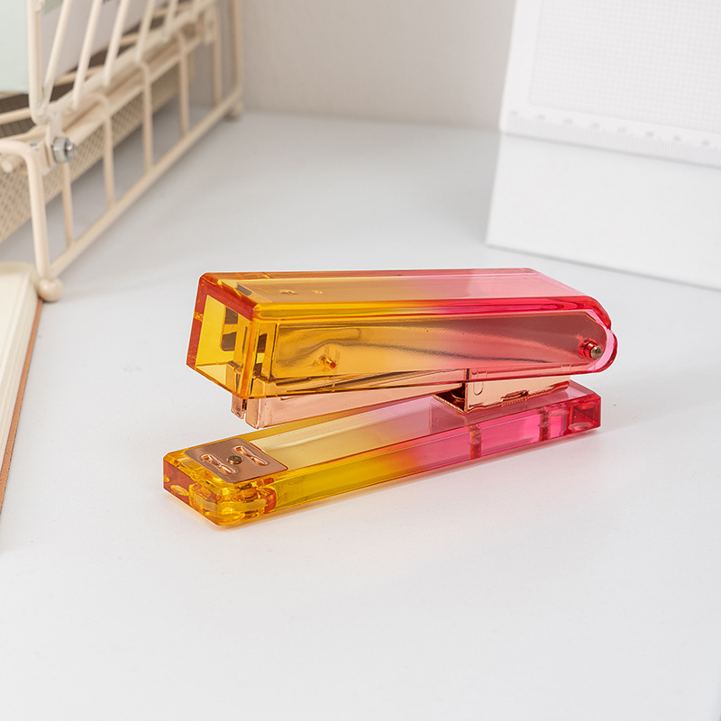 Mingqiang 투명 아크릴 스테이플러 투명 로즈 골드 스테이플러 대형 바인딩 기계 데스크탑 사무용품스토어 가기
