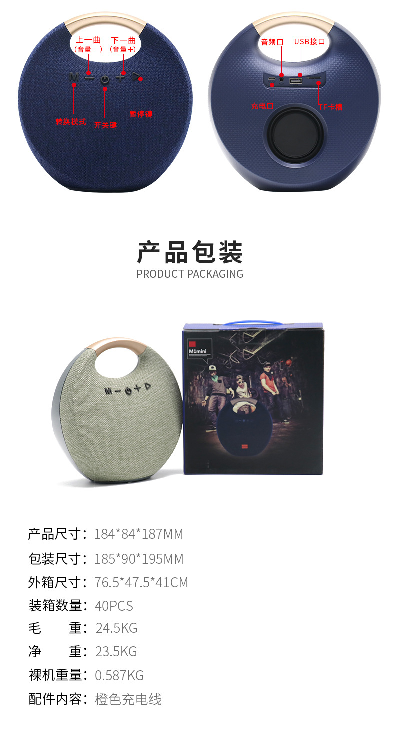 인기 판매 소형 위성 블루투스 스피커 휴대용 패브릭 소형 스피커 수출용 인기 상품 중저음 M1mini 소형 위성스토어 가기