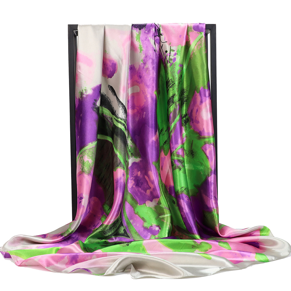 실크 스카프 여성 90*90cm 대형 사각 스카프 추상 예술 유화 인쇄 실크 스카프 여성 빠른 손 라이브 스카프
