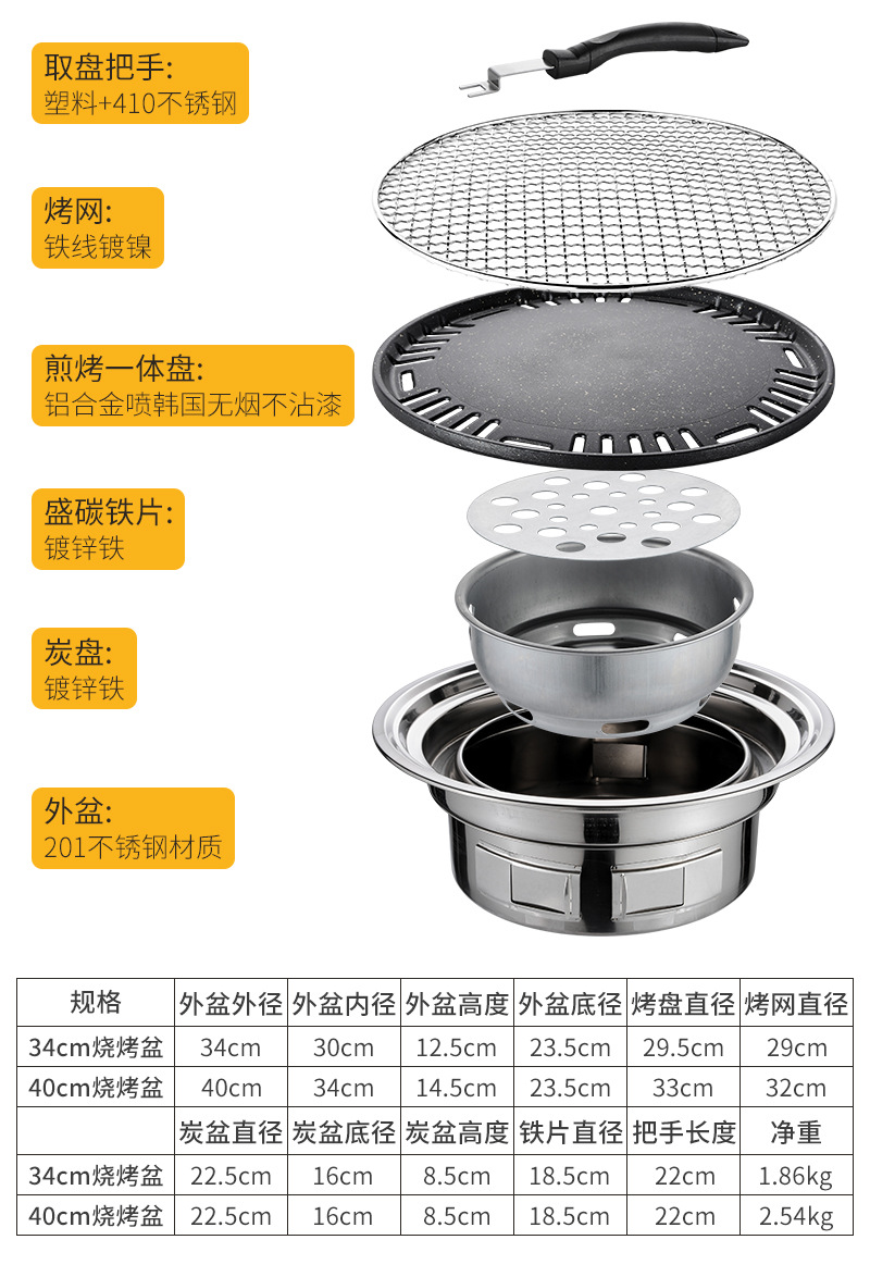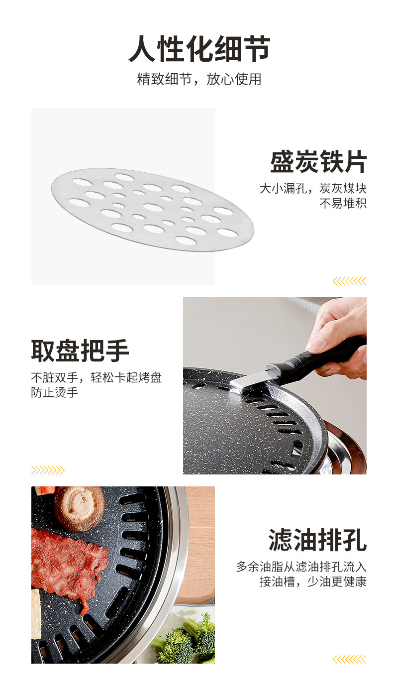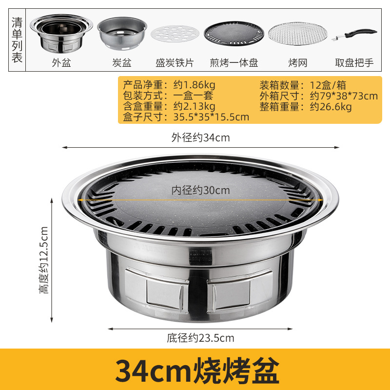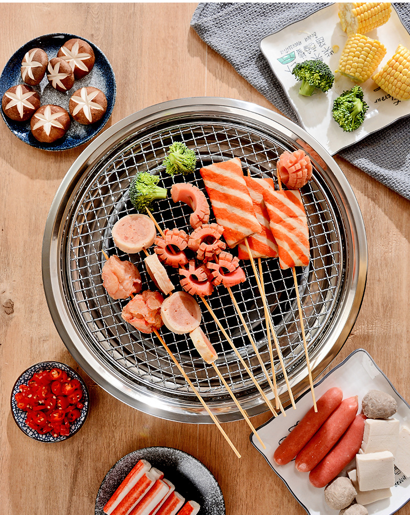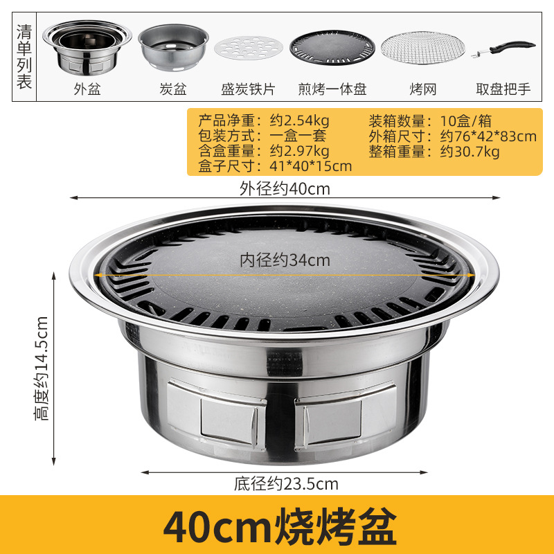 가벼운 연기 바베큐 스토브 가정용 숯 라운드 작은 바베큐 통합 보일러 랙 야외 상업 한국 바베큐 스토브 분지