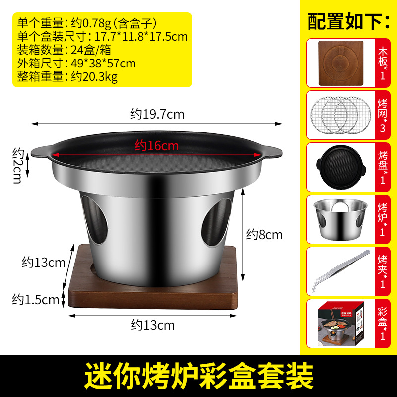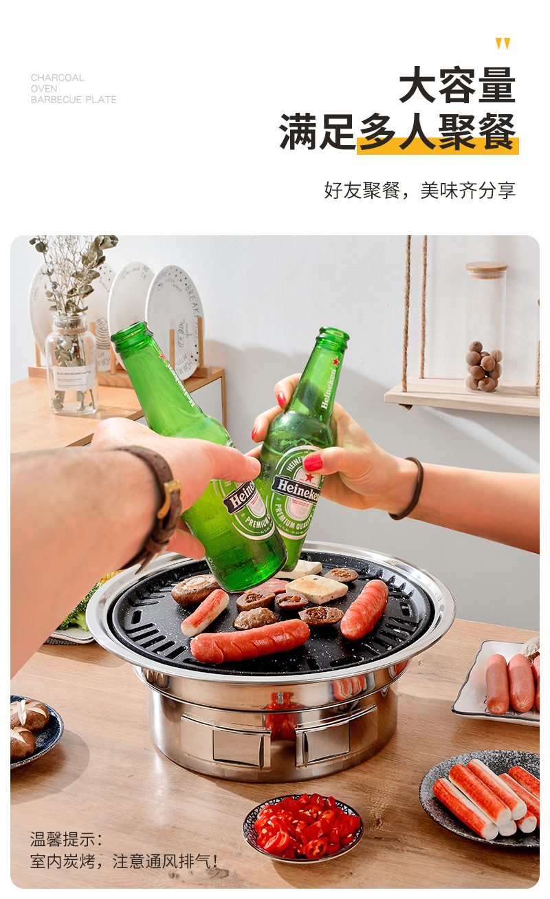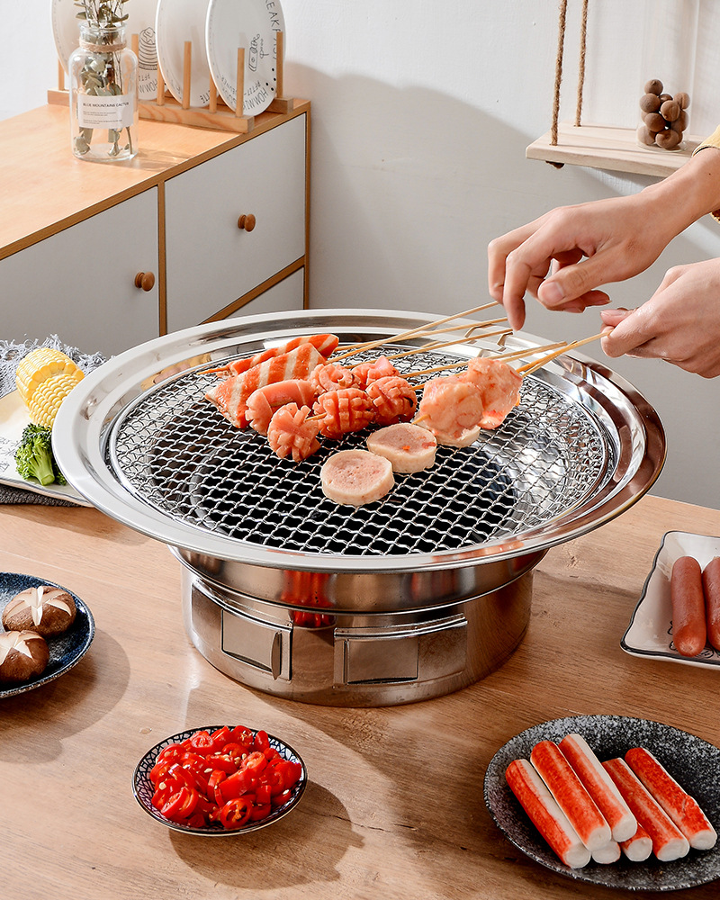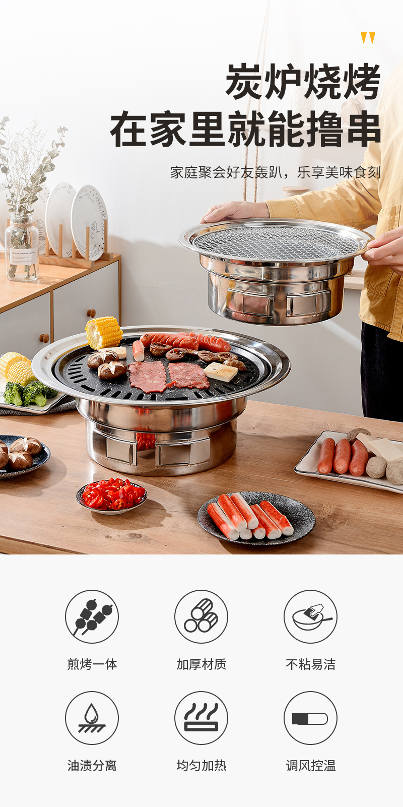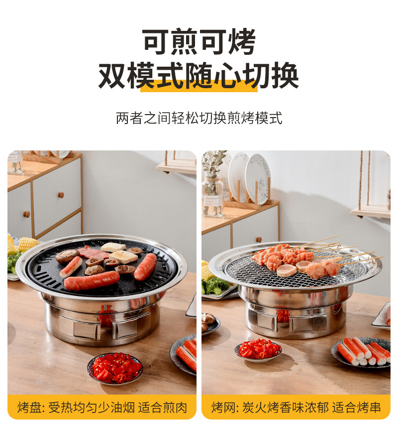 가벼운 연기 바베큐 스토브 가정용 숯 라운드 작은 바베큐 통합 보일러 랙 야외 상업 한국 바베큐 스토브 분지스토어 가기