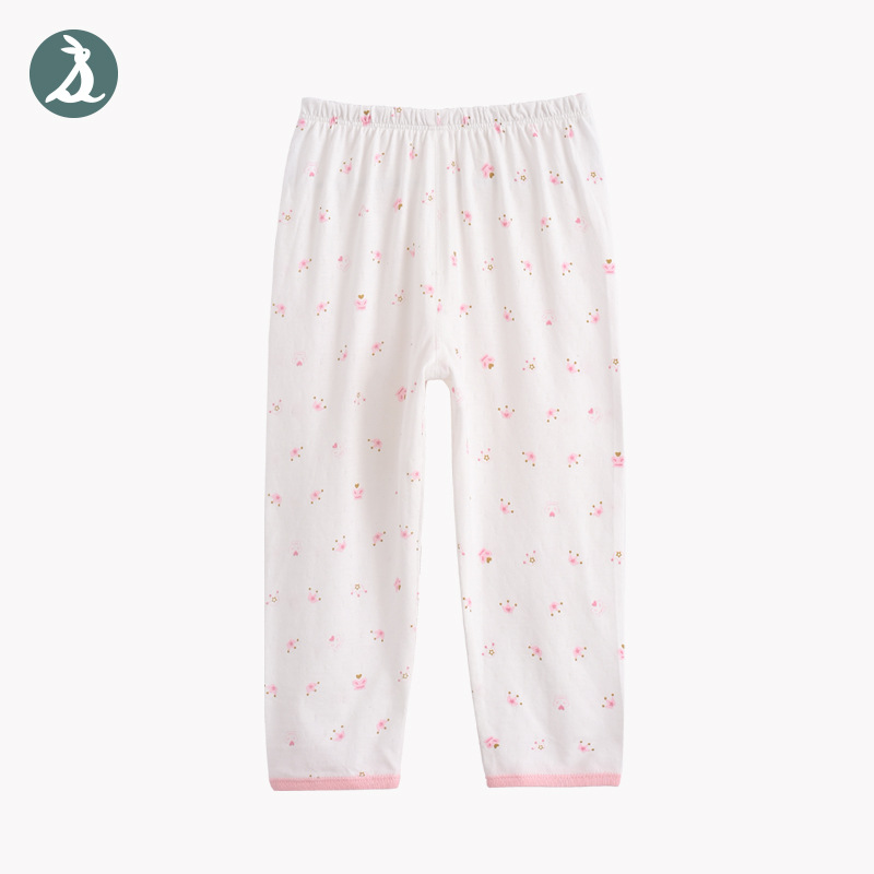 어린이 얇은 가을 바지 봄과 여름 면 홈 바지 느슨한 레깅스 미드 웨이스트 오픈 캐주얼 아기 바지