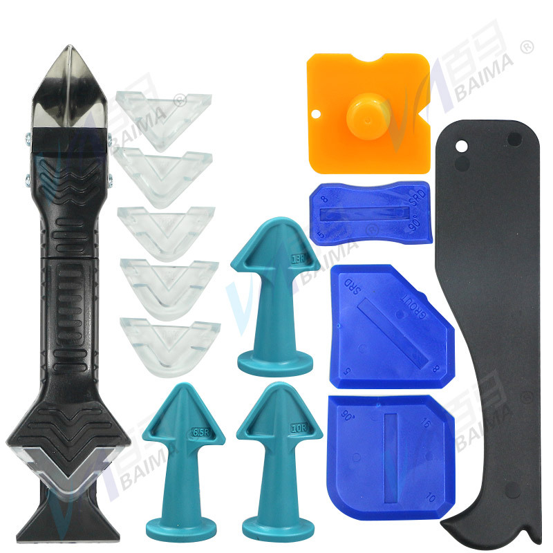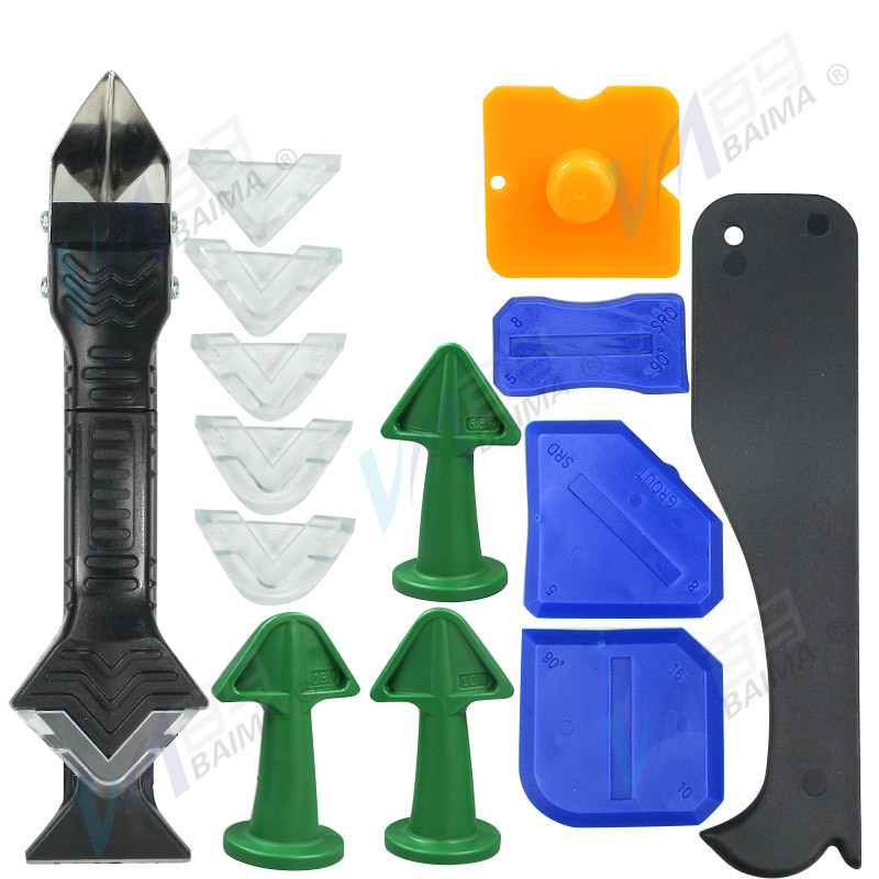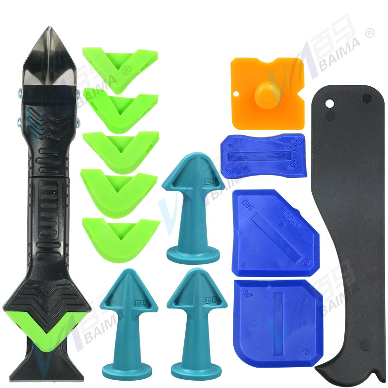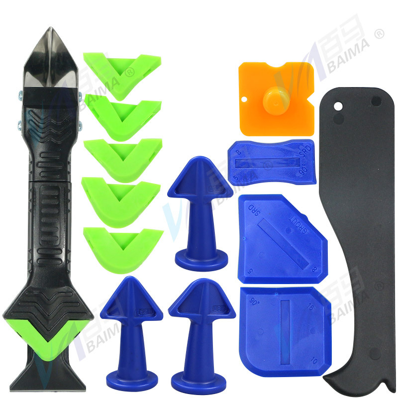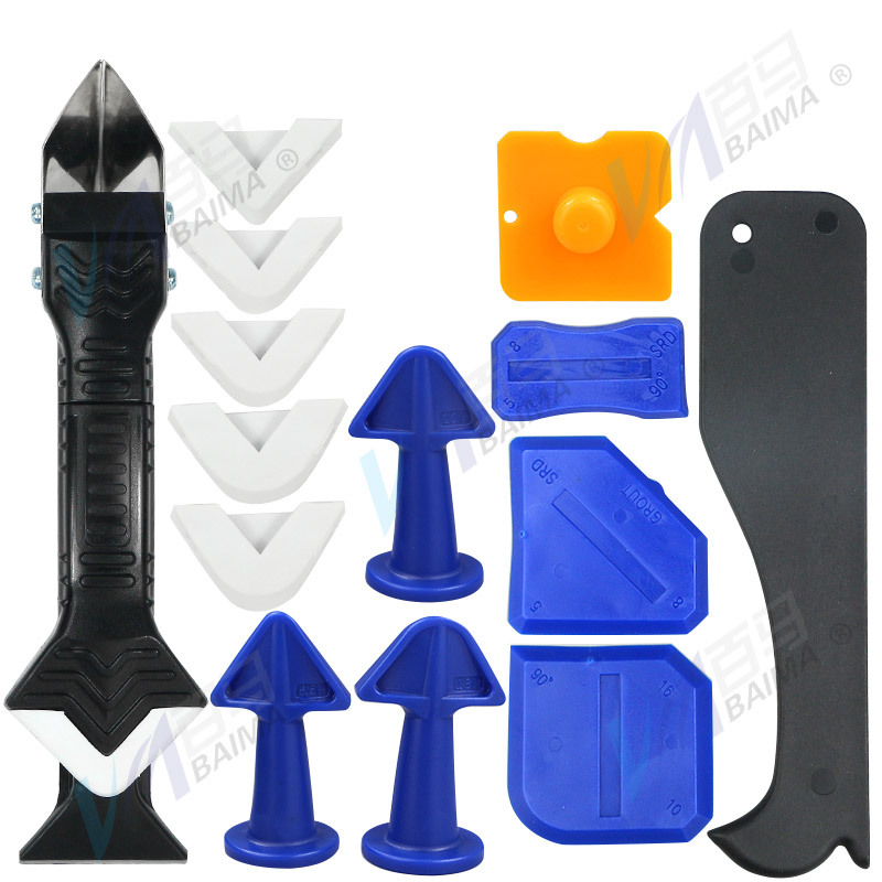 크로스 보더 실리콘 노즐 응용 프로그램 3 in 1 금속 스크레이퍼 스크레이퍼 씰 코킹 창 타일 주방 욕실 15 개스토어 가기