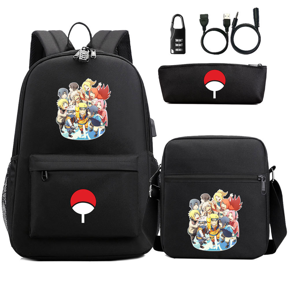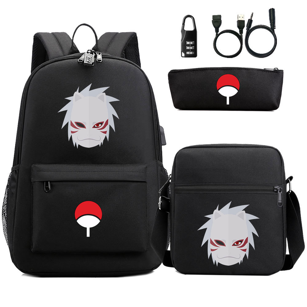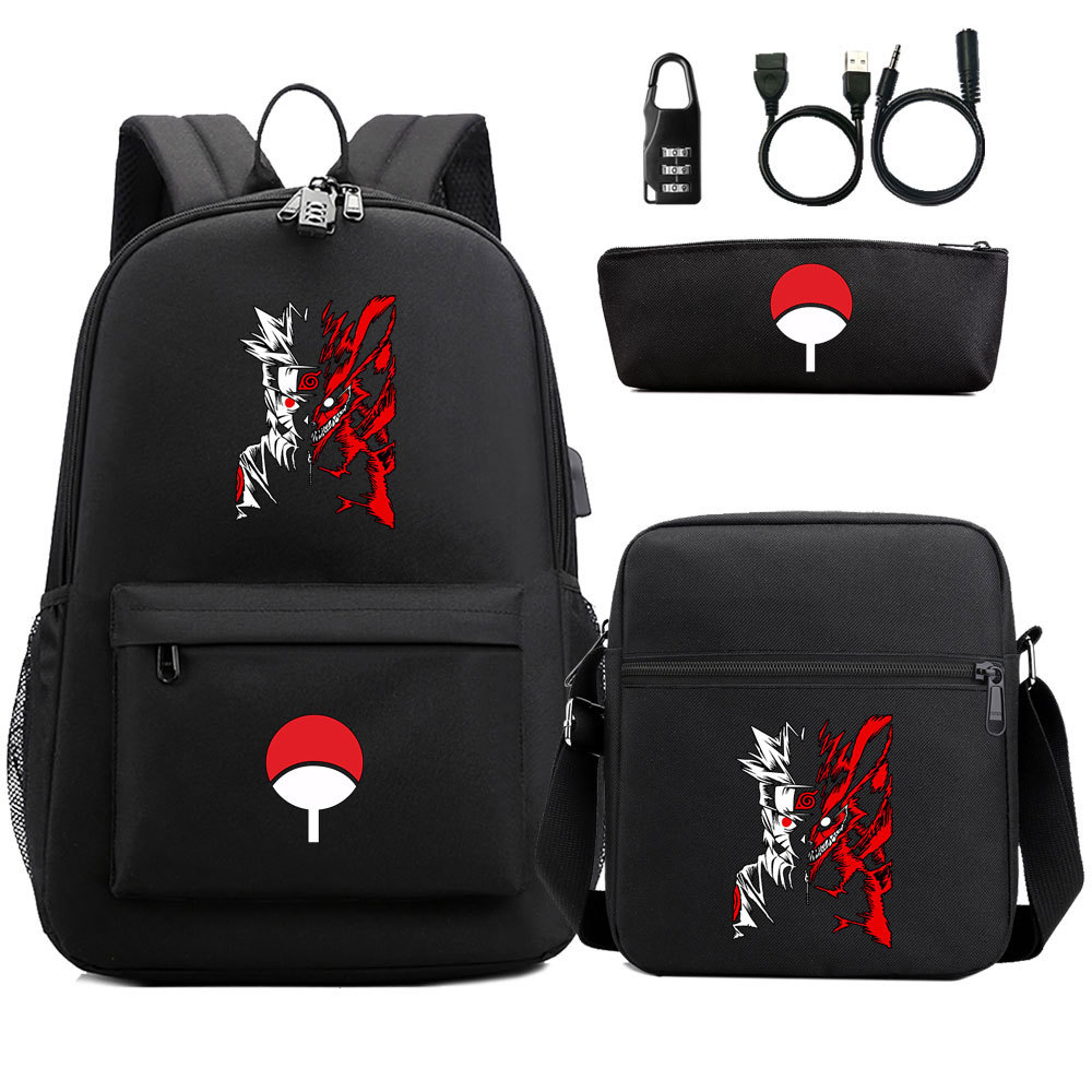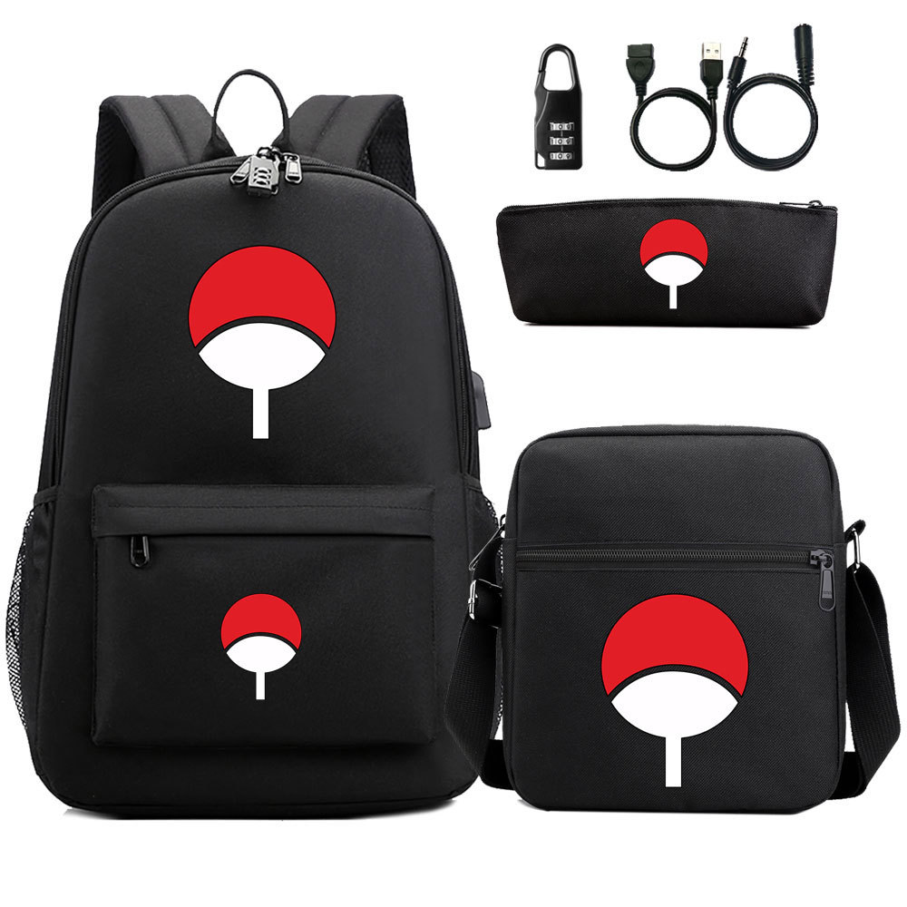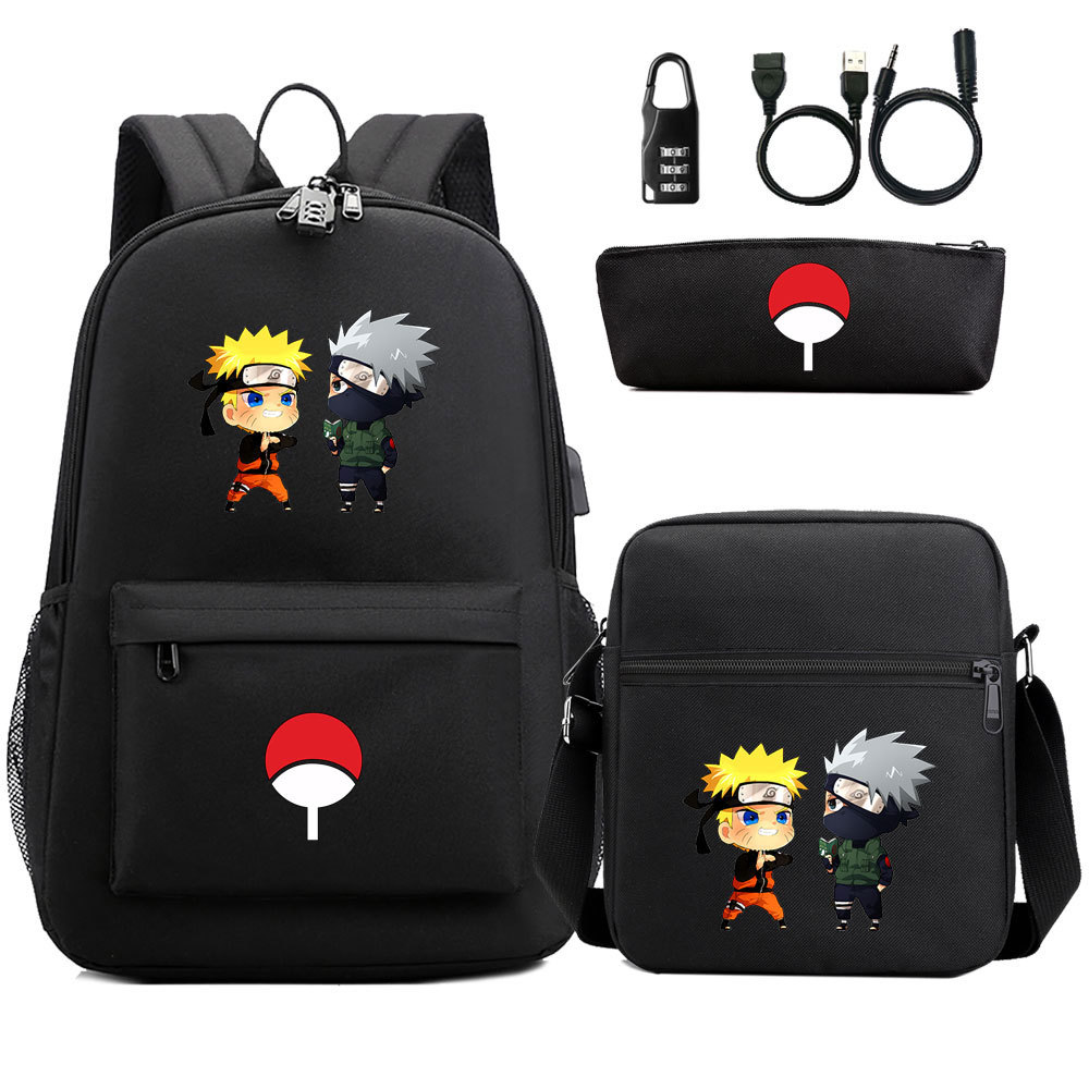 아모이 소스 나루토 USB 콤비네이션 락 청소년 학생 책가방 3 종 세트 남녀 배낭 세트