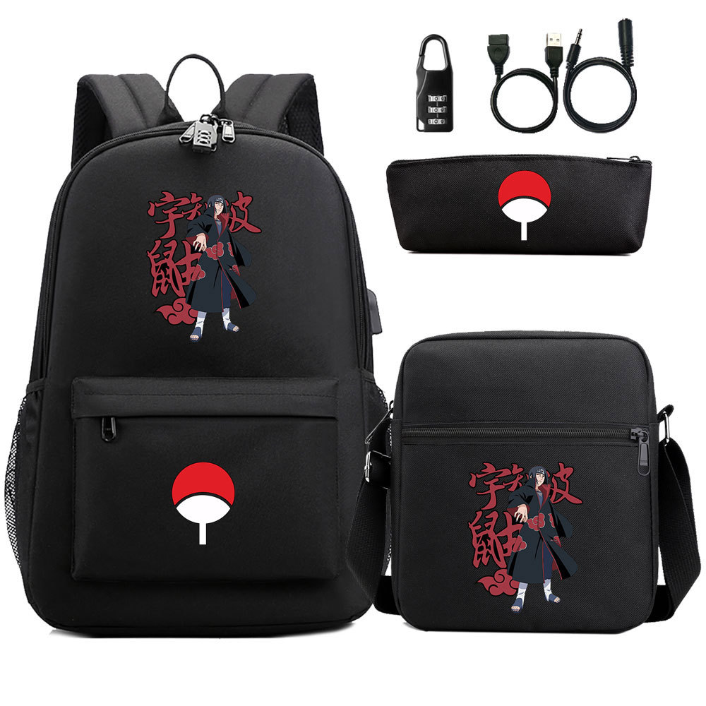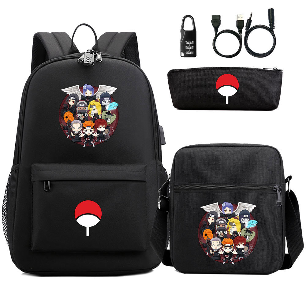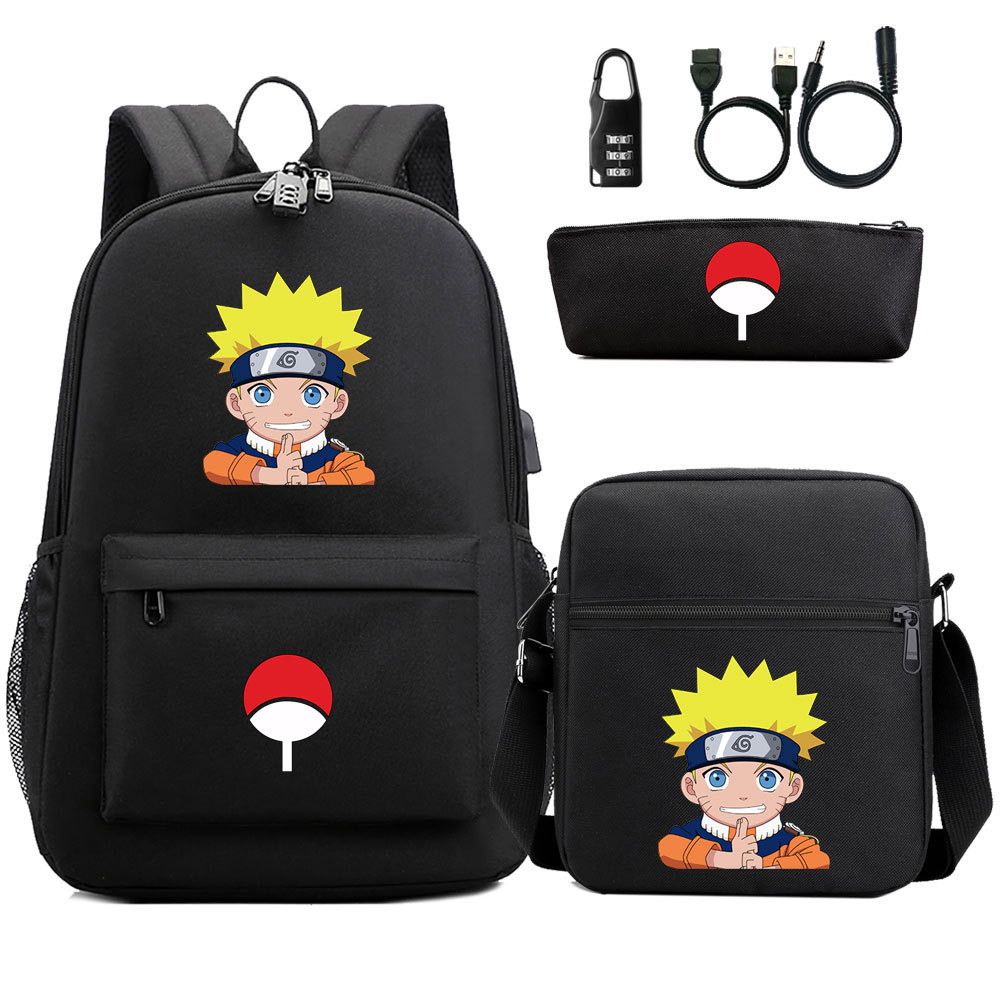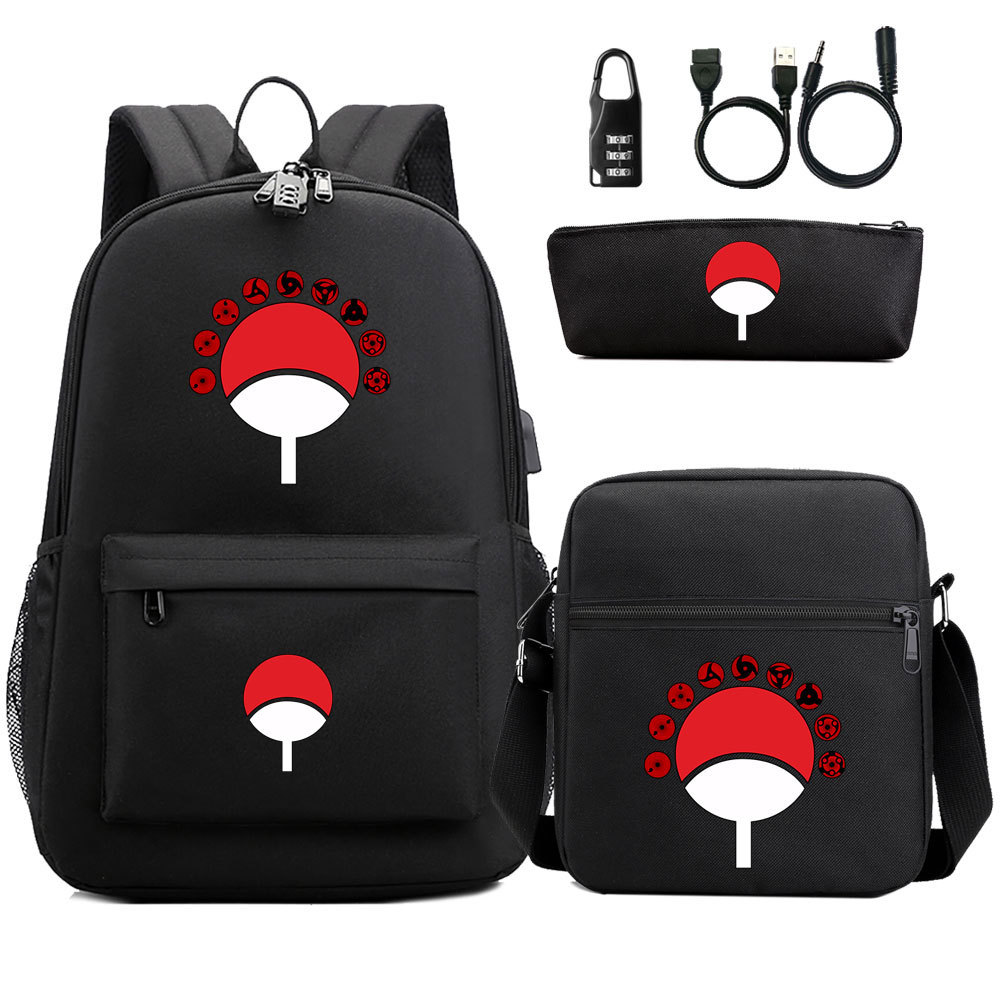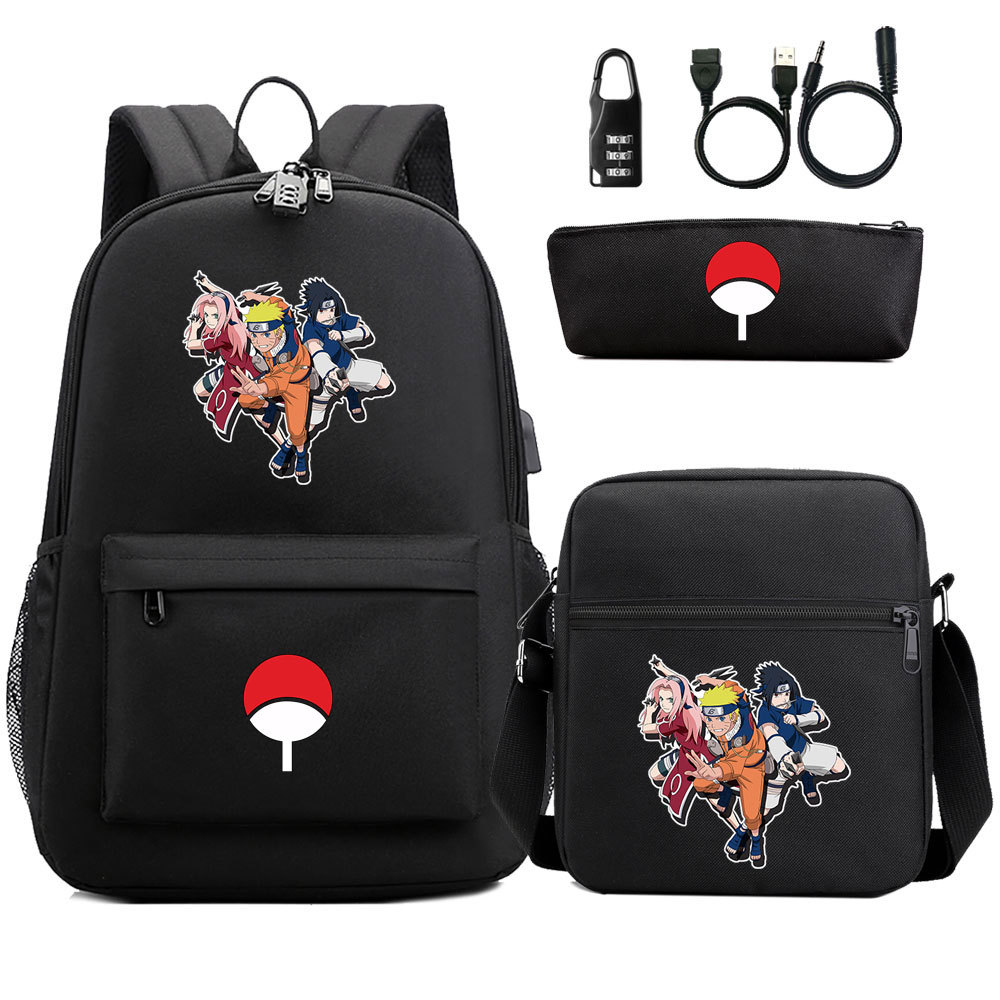 아모이 소스 나루토 USB 콤비네이션 락 청소년 학생 책가방 3 종 세트 남녀 배낭 세트