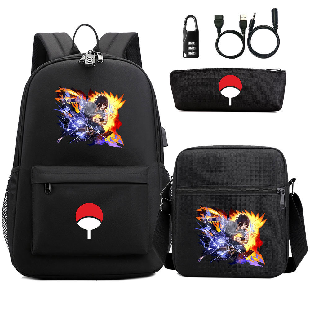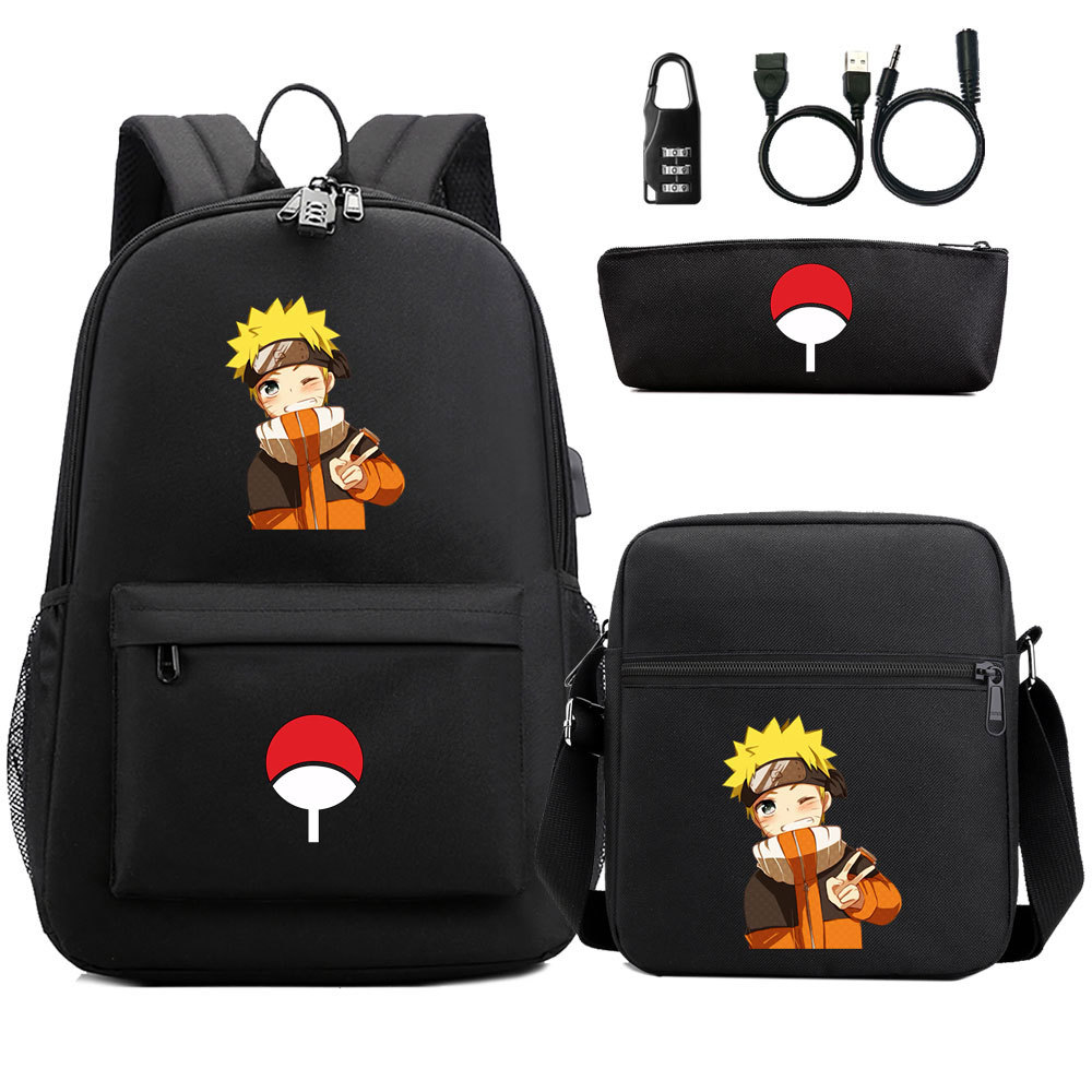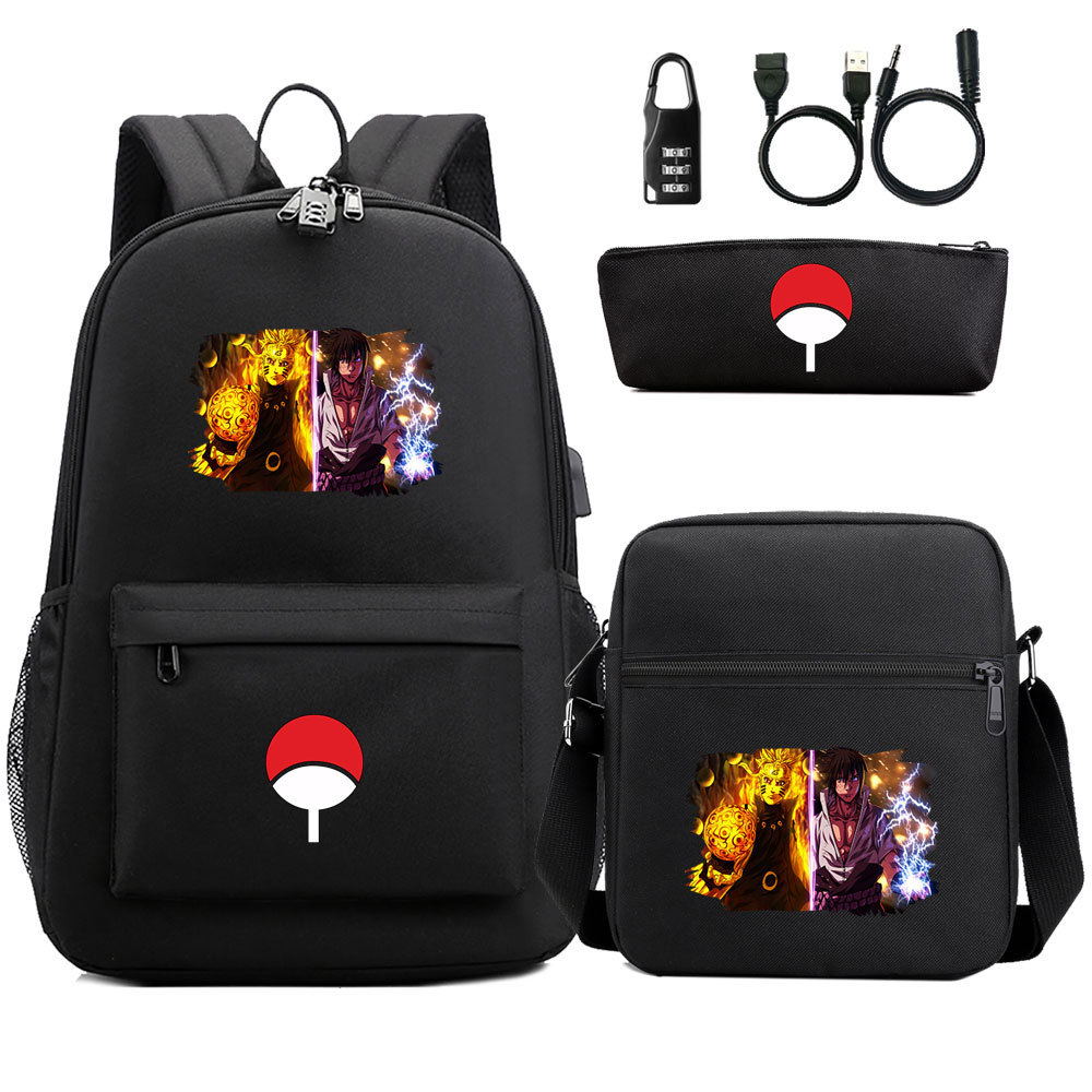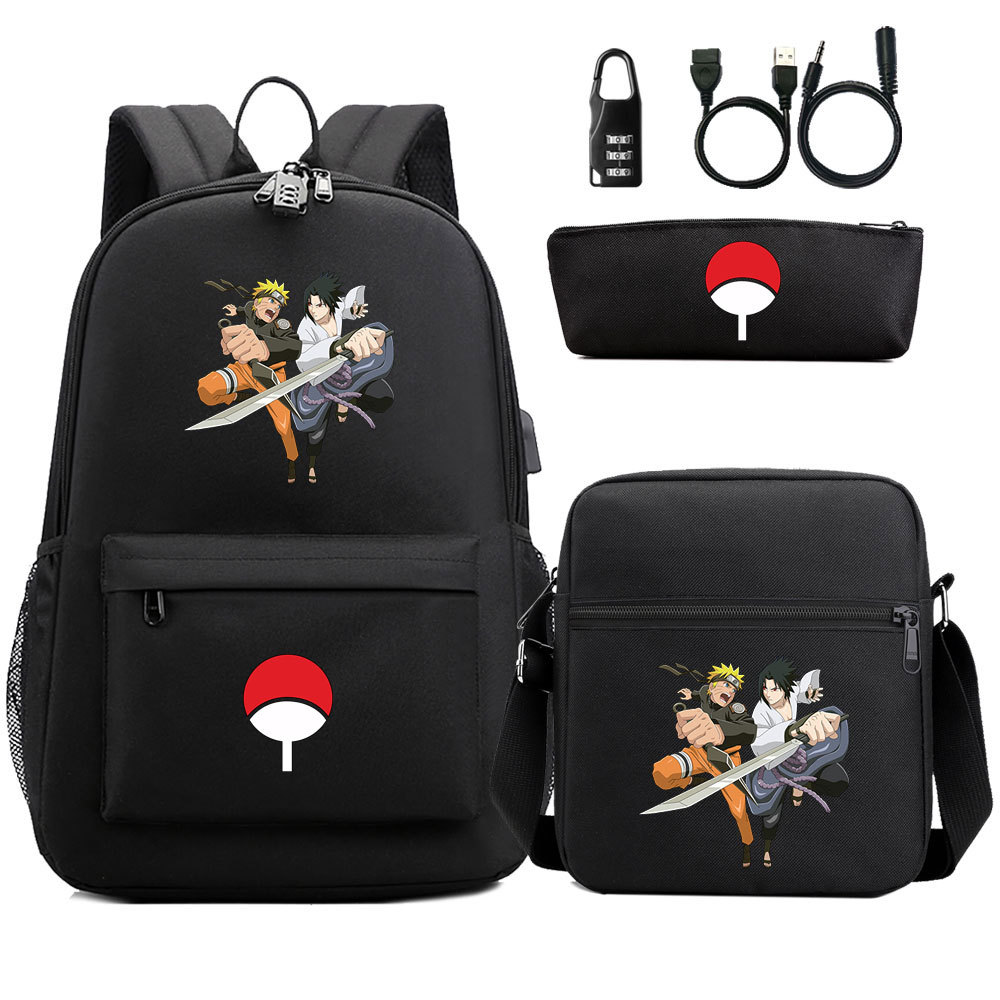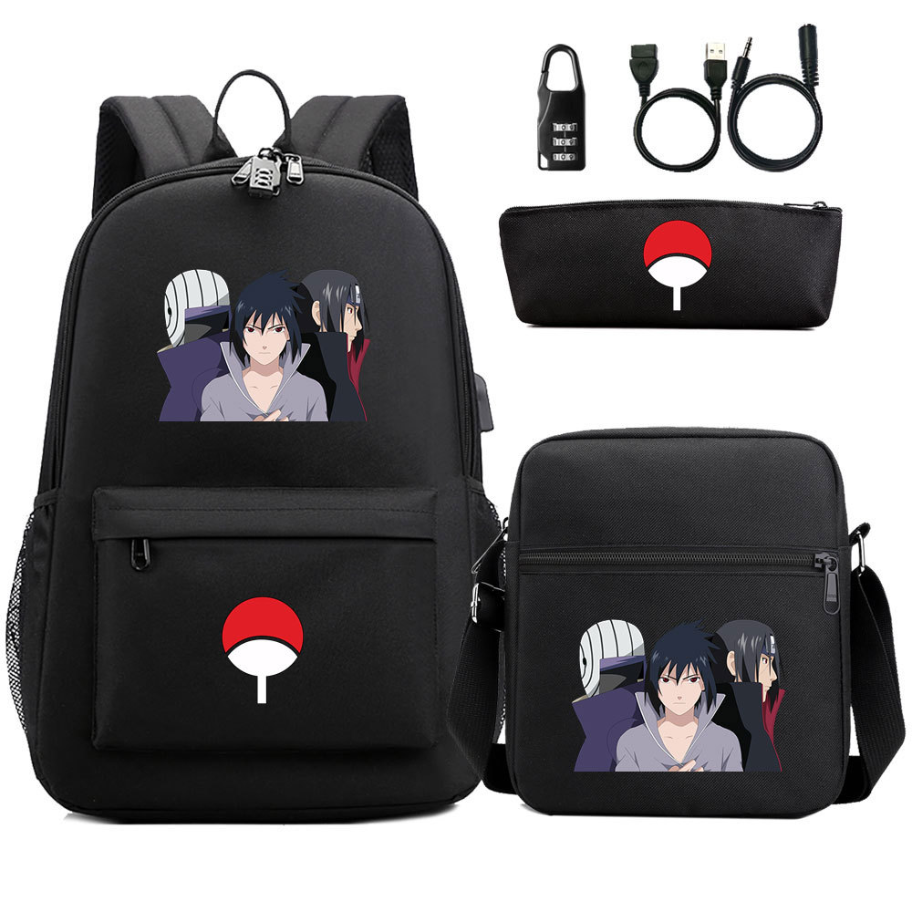 아모이 소스 나루토 USB 콤비네이션 락 청소년 학생 책가방 3 종 세트 남녀 배낭 세트