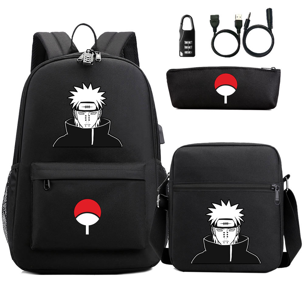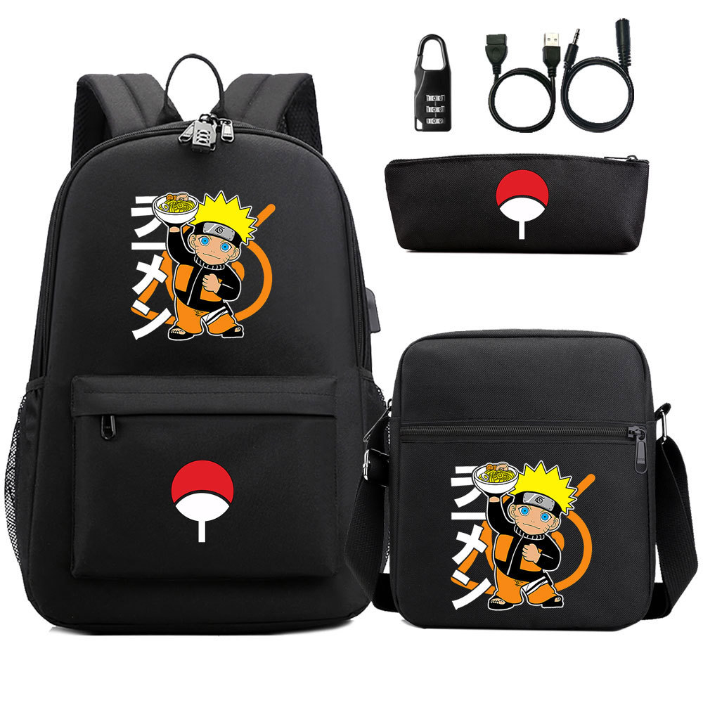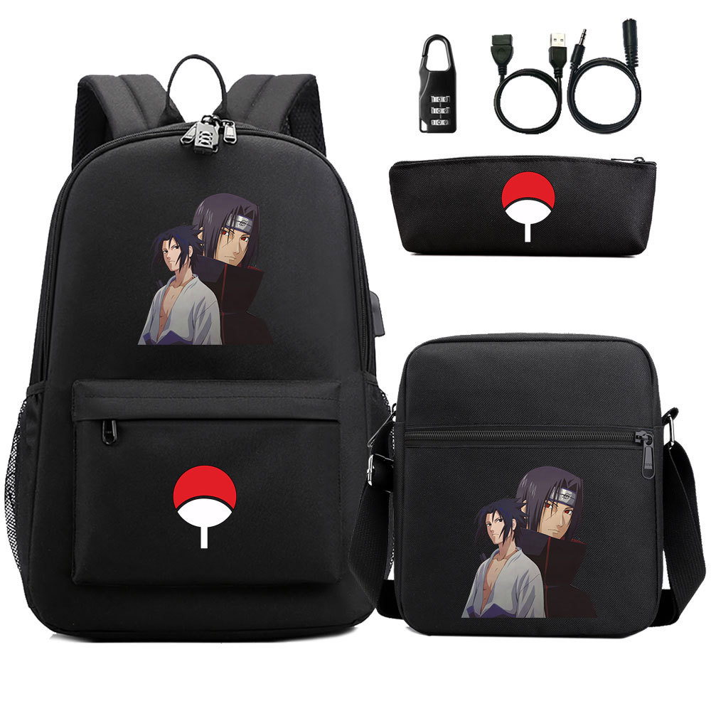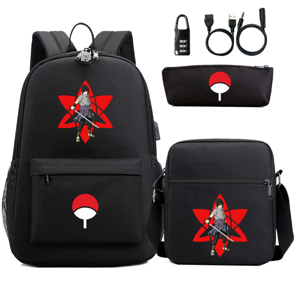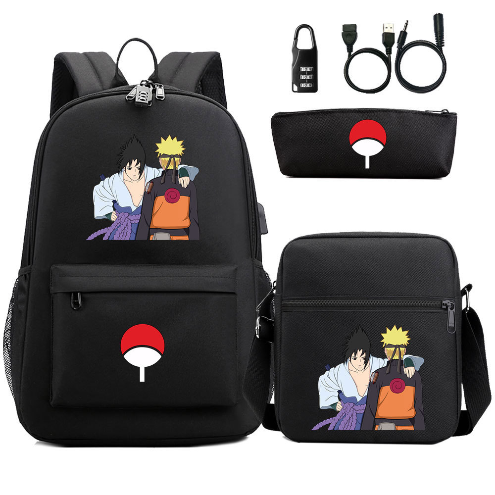 아모이 소스 나루토 USB 콤비네이션 락 청소년 학생 책가방 3 종 세트 남녀 배낭 세트