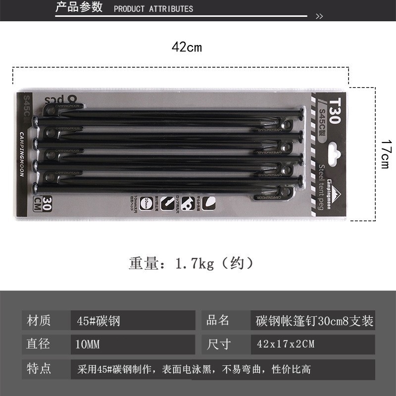 Coleman 45 # 탄소 강철 캠프 지상 못 텐트 고정 극 캐노피 못 30cm 8 세트 탄소 강철 금속 텐트 못