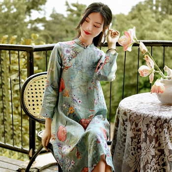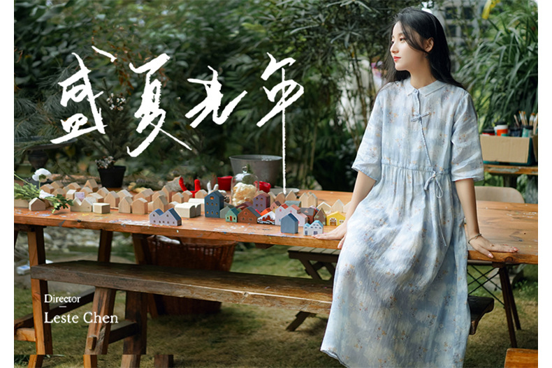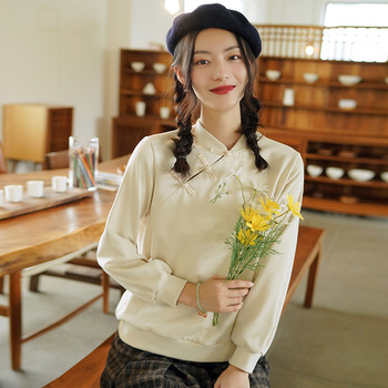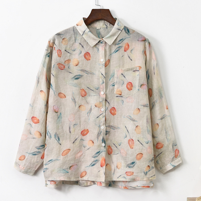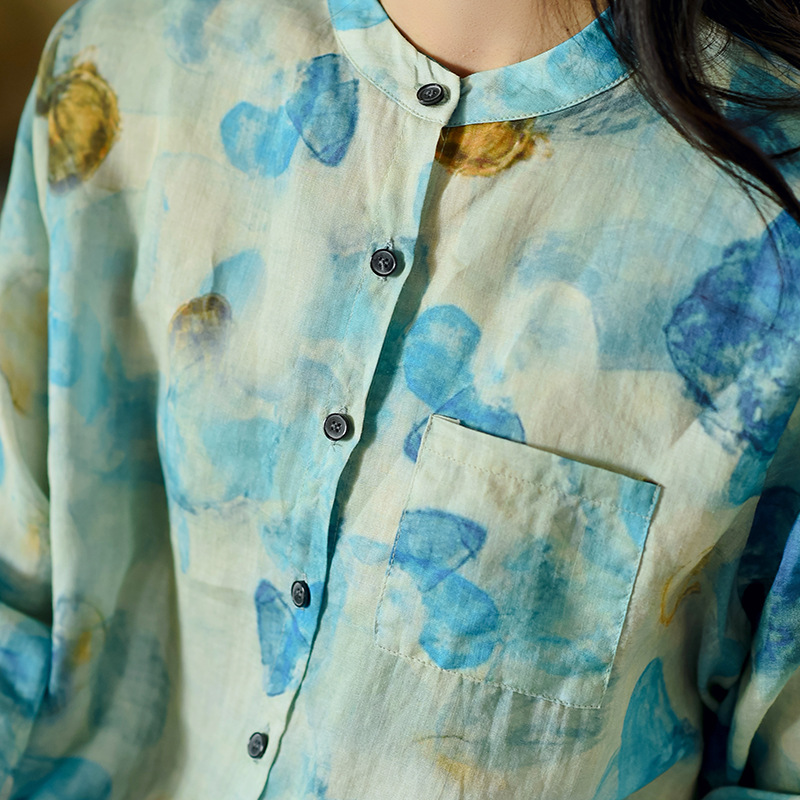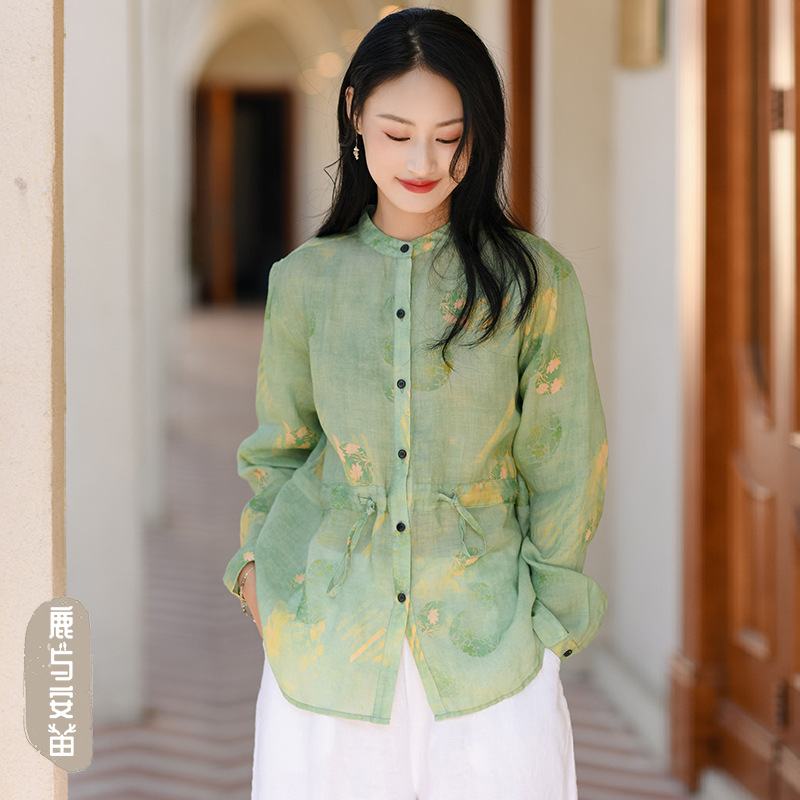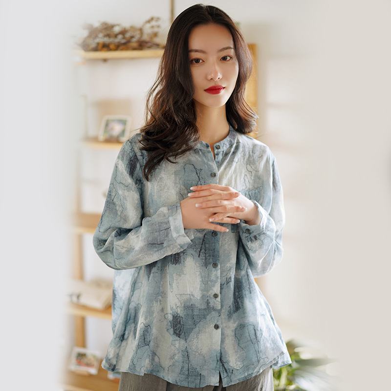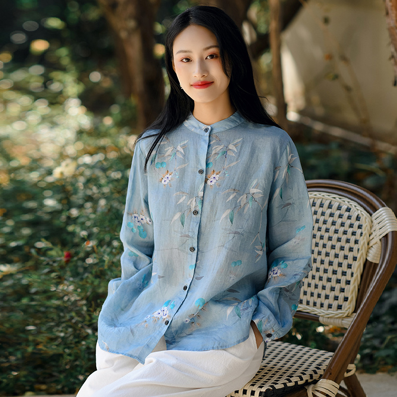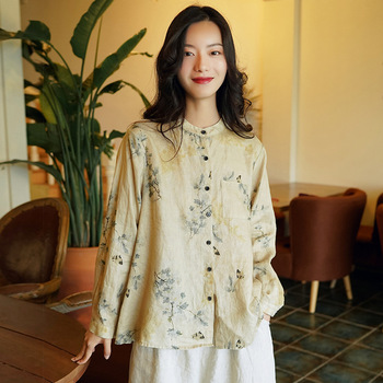 가을 2023 새로운 중국 라미 여성의면과 린넨 셔츠 여성의 디자인 감각 틈새 칼라 셔츠 빈티지스토어 가기