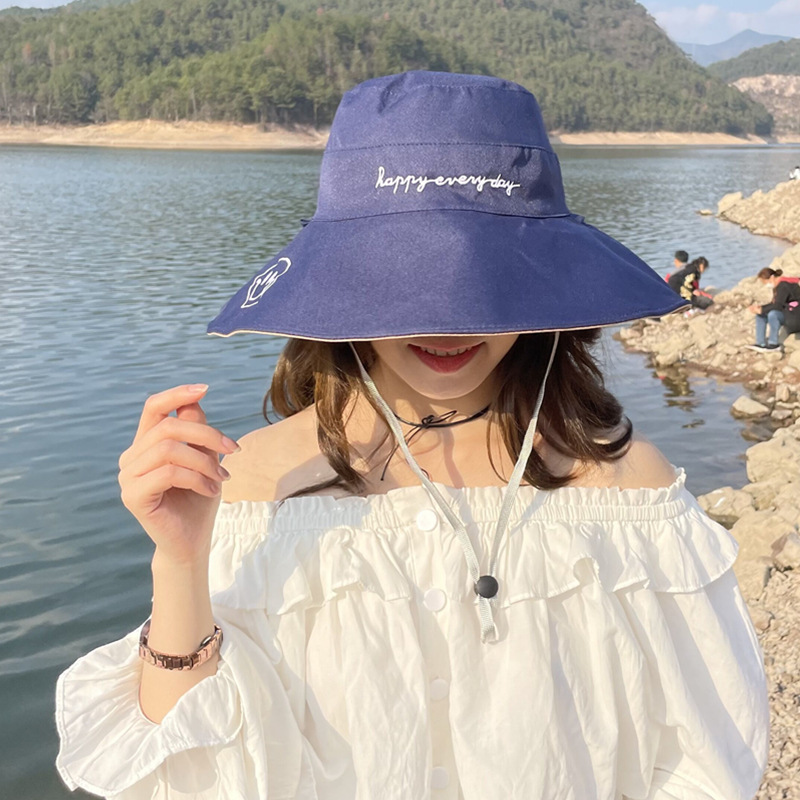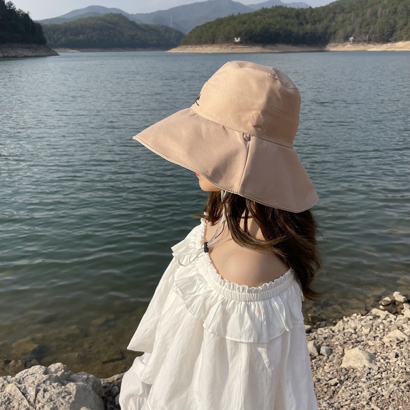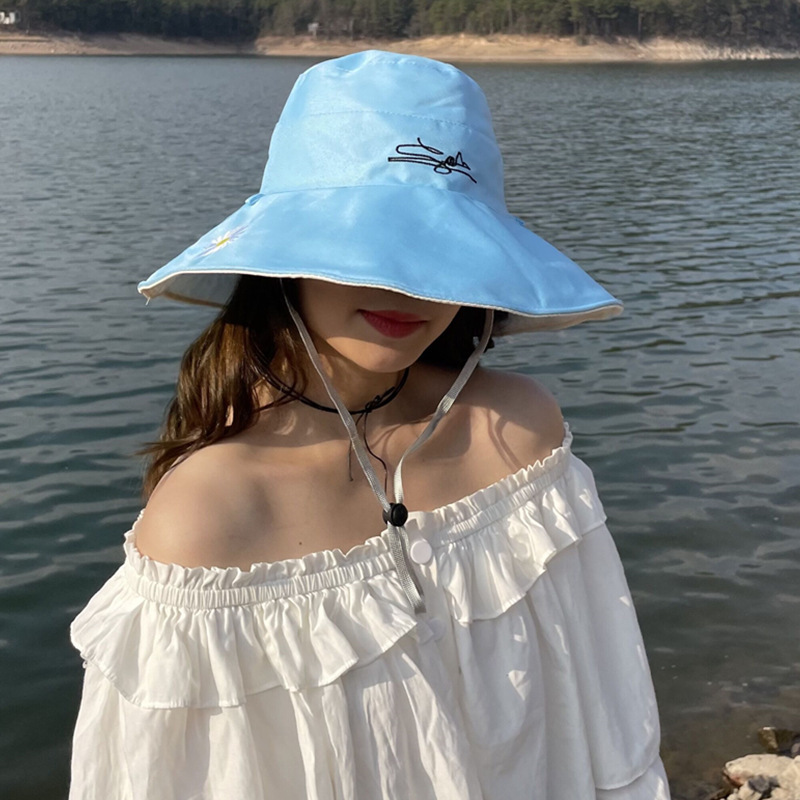 양면 어부 모자 한국 스타일 넓은 챙 자외선 차단 얼굴 가리개 패션 단색 인기 모자 여성 캐주얼 다용도스토어 가기