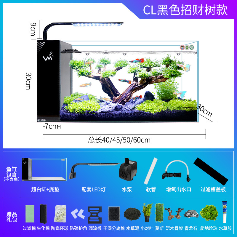 거실 가정용 작은 어항 생태 크리 에이 티브 수족관 슈퍼 화이트 사이드 필터 무료 물 변경 게으른 자기 순환 어항