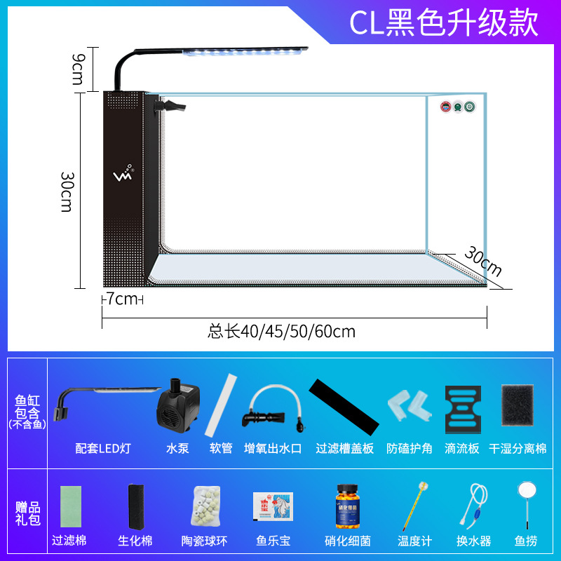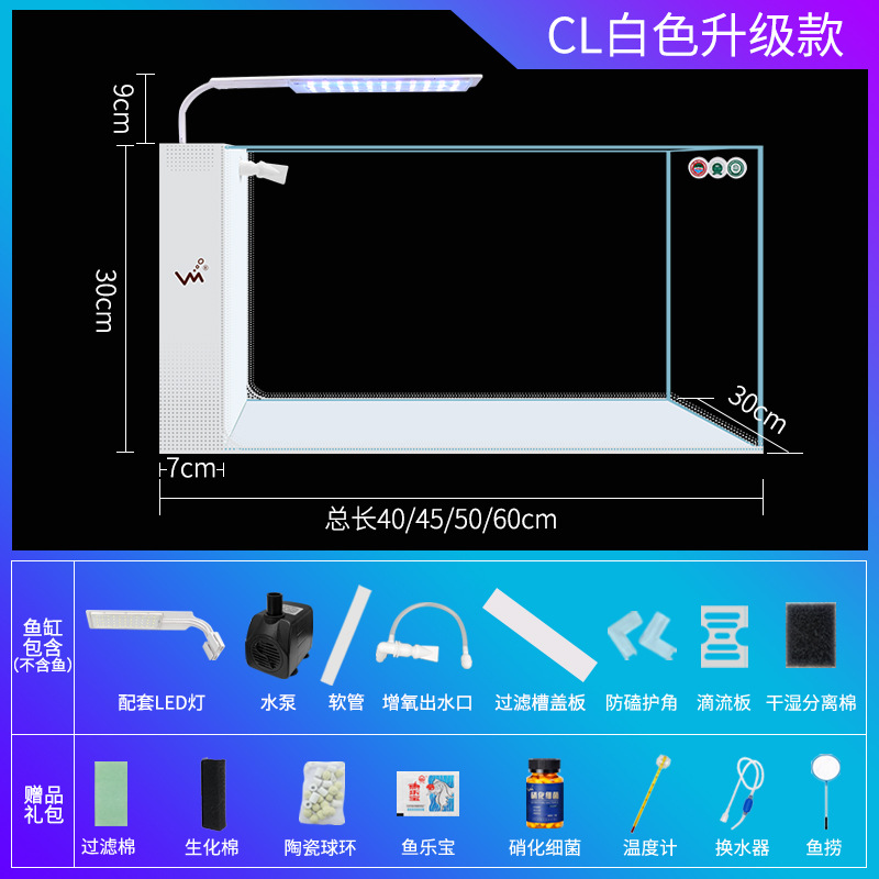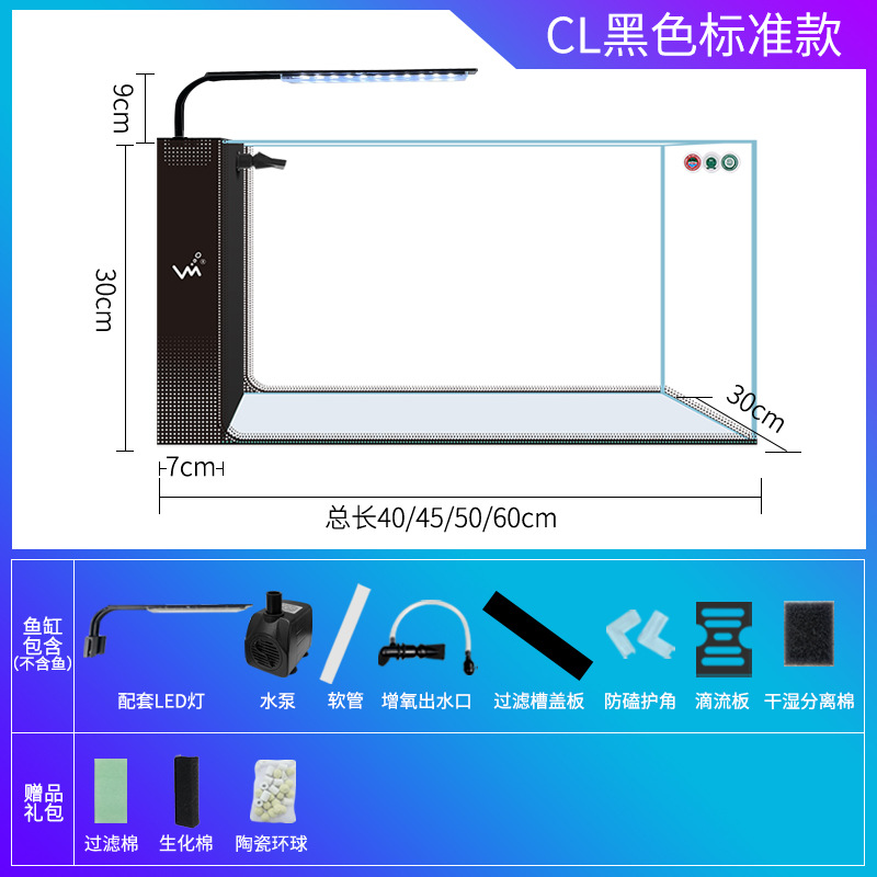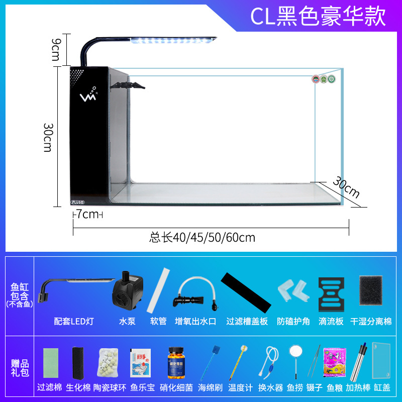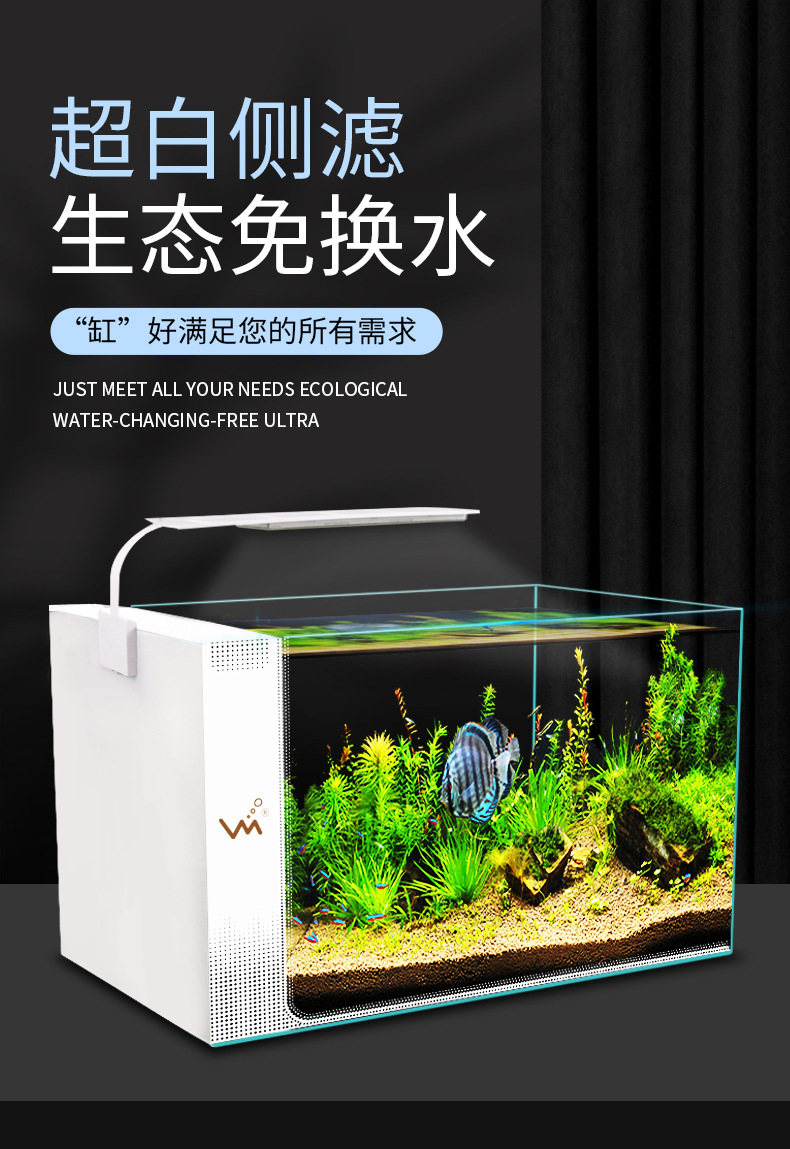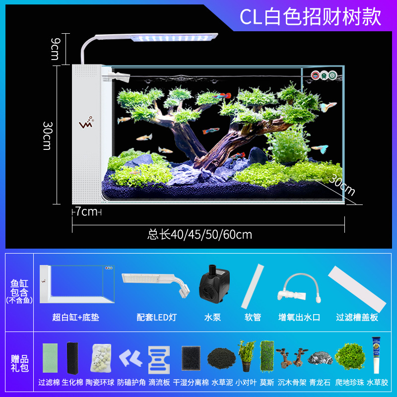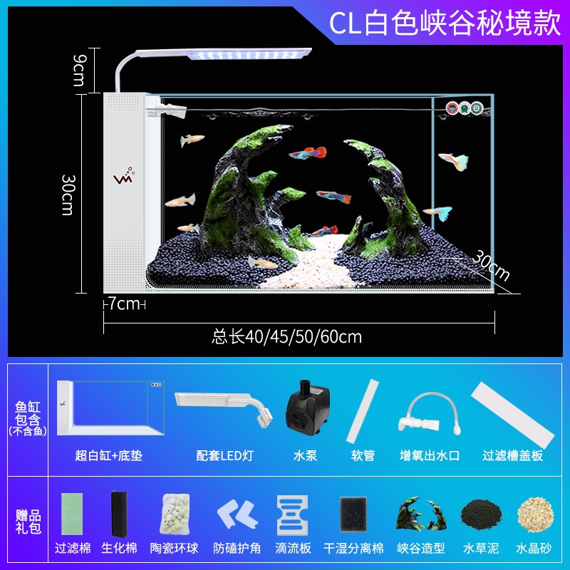 거실 가정용 작은 어항 생태 크리 에이 티브 수족관 슈퍼 화이트 사이드 필터 무료 물 변경 게으른 자기 순환 어항스토어 가기
