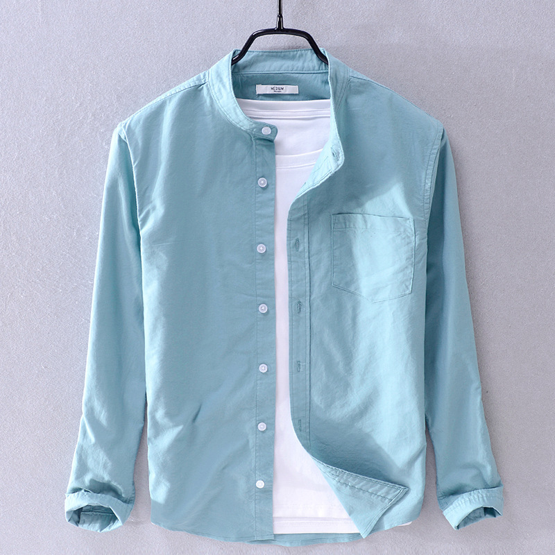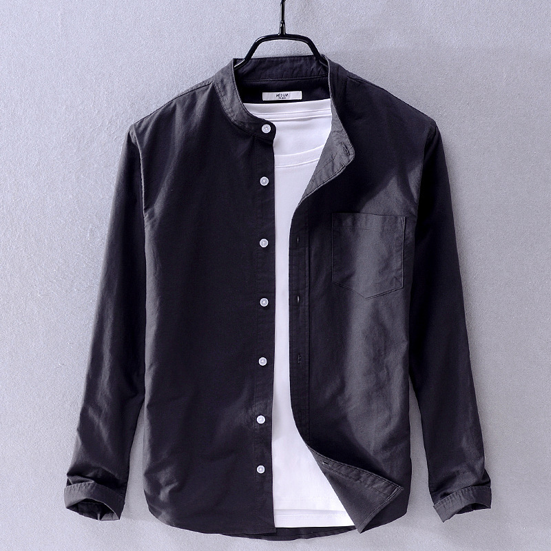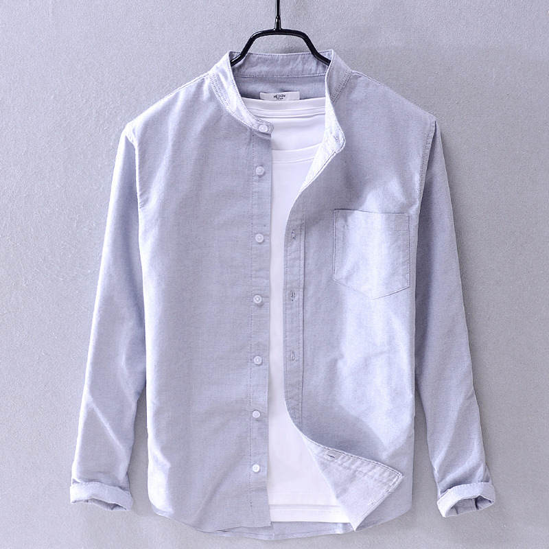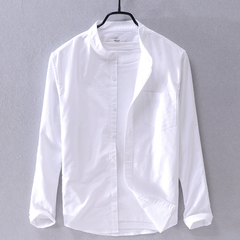 남자 셔츠 가을 새로운 옥스포드 섬유 캐주얼 남성 안감 편안한 긴 소매 흰색 기본 셔츠스토어 가기