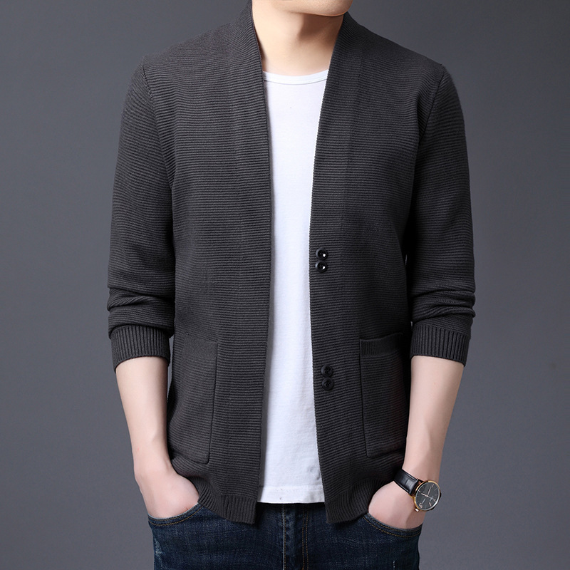 2022 봄과 가을 새로운 남성 스웨터 패션 단색 스웨터 가디건 긴 소매 V-넥 니트 캐주얼 남성 자켓