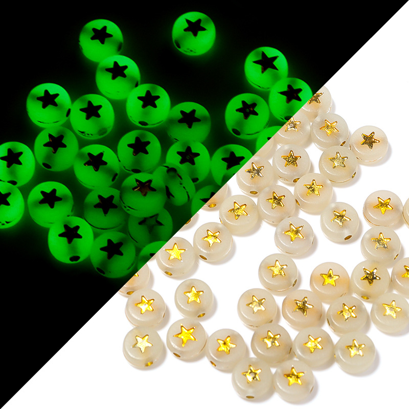 亚克力夜光扁圆珠子,直径约10mm厚度约4.2mm,孔径约2mm,每包100pcs约有35g,大号金色字母 |