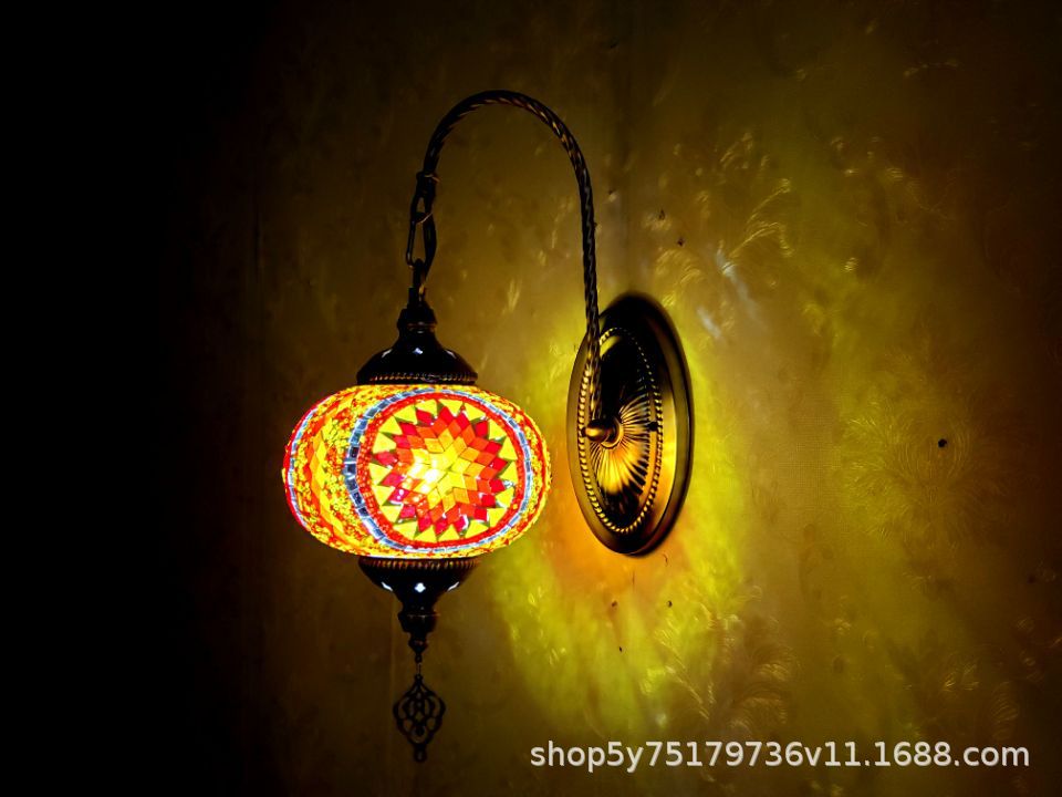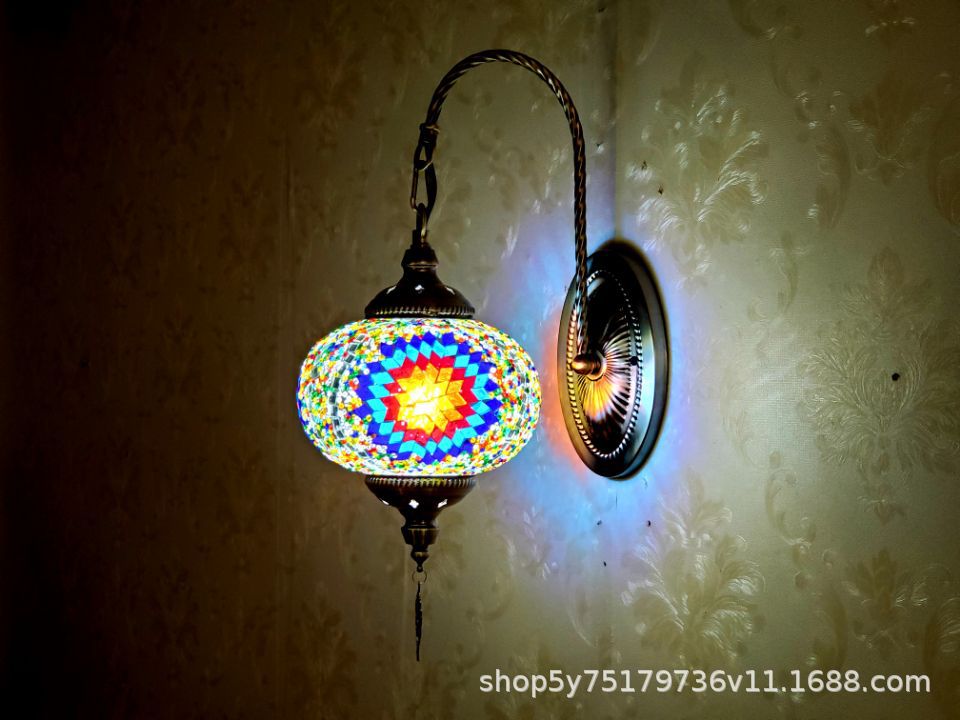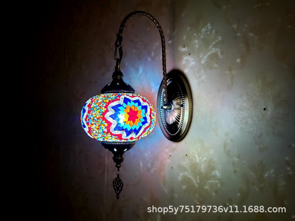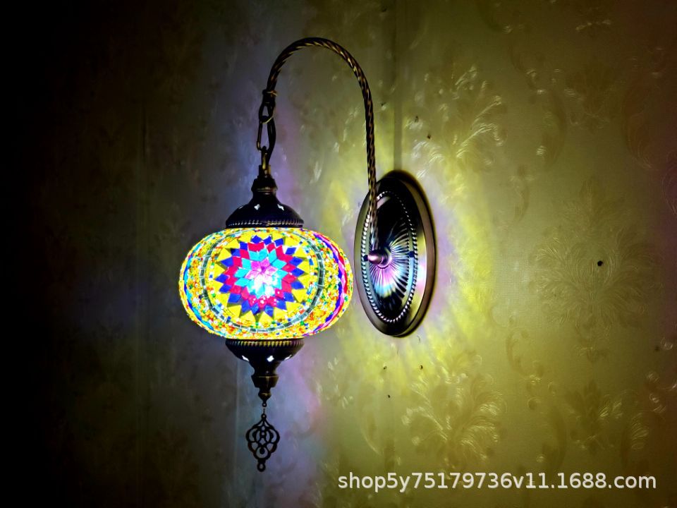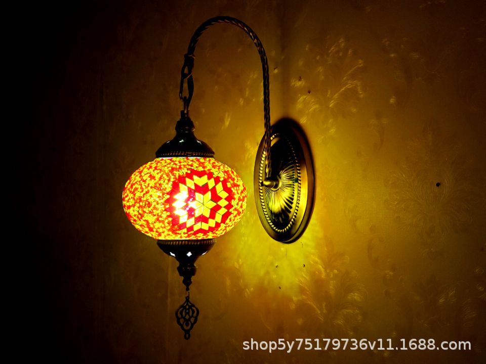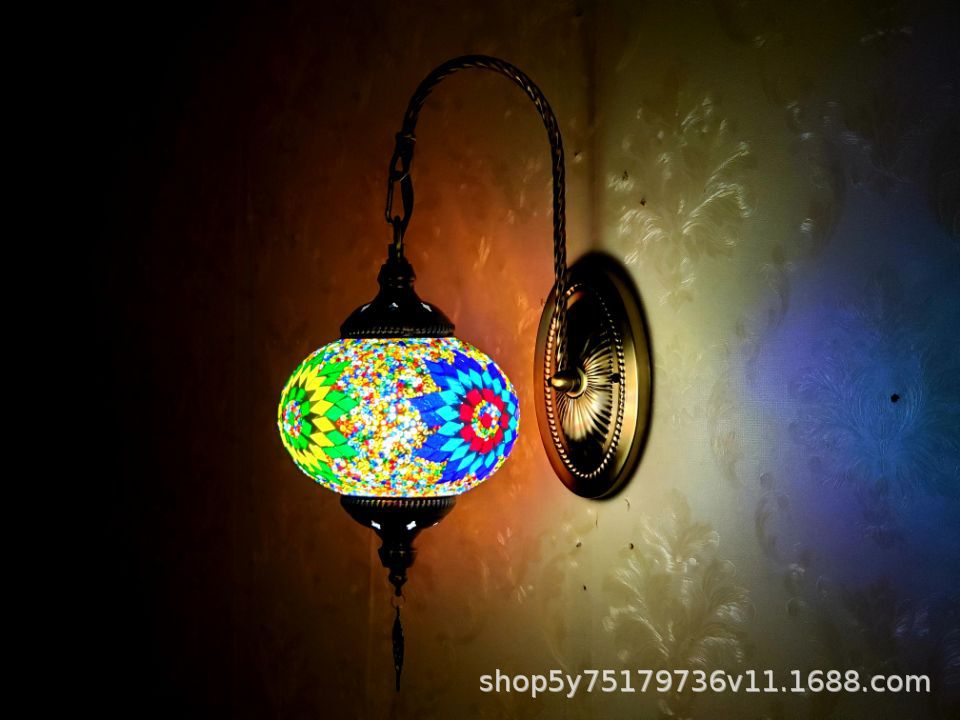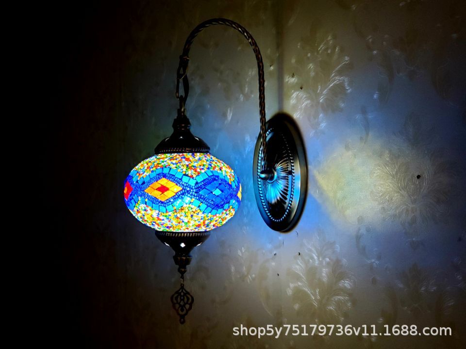 产品特点:土耳其风格、漫咖啡、民族民宿床头灯装饰、古典、裂纹玻璃复古浪漫壁灯。