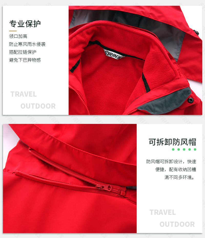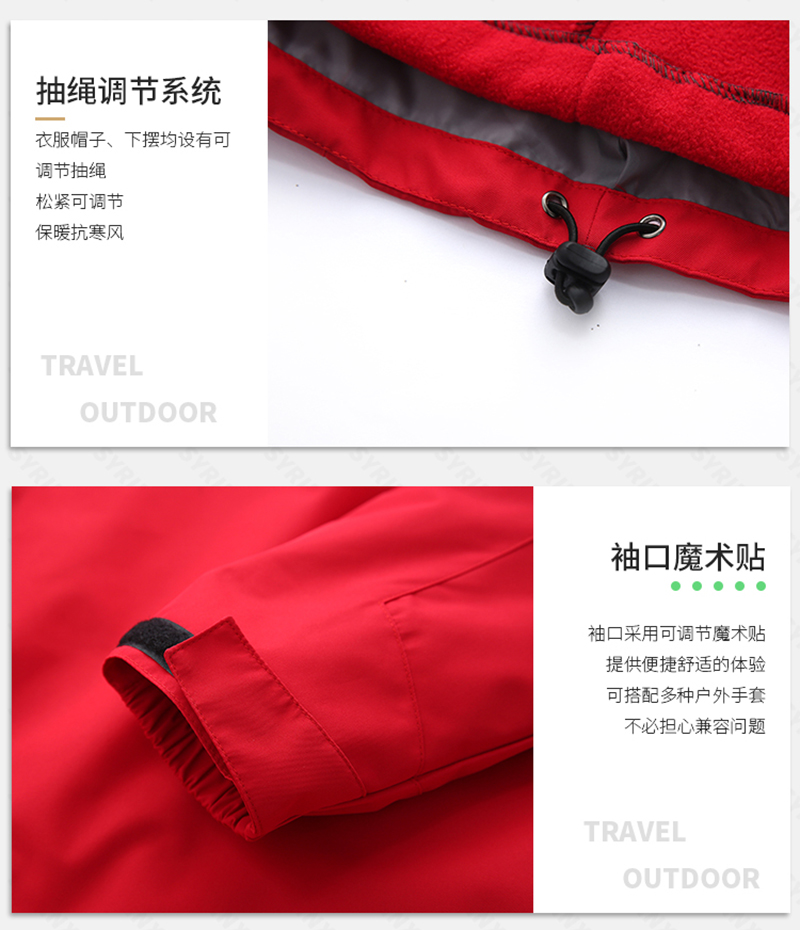 야외 가을과 겨울 트렌디 브랜드 충전 의류 여성용 Three-in-one 이동식 투피스 세트 기모 두꺼운 남성용 등산 세트 티베트