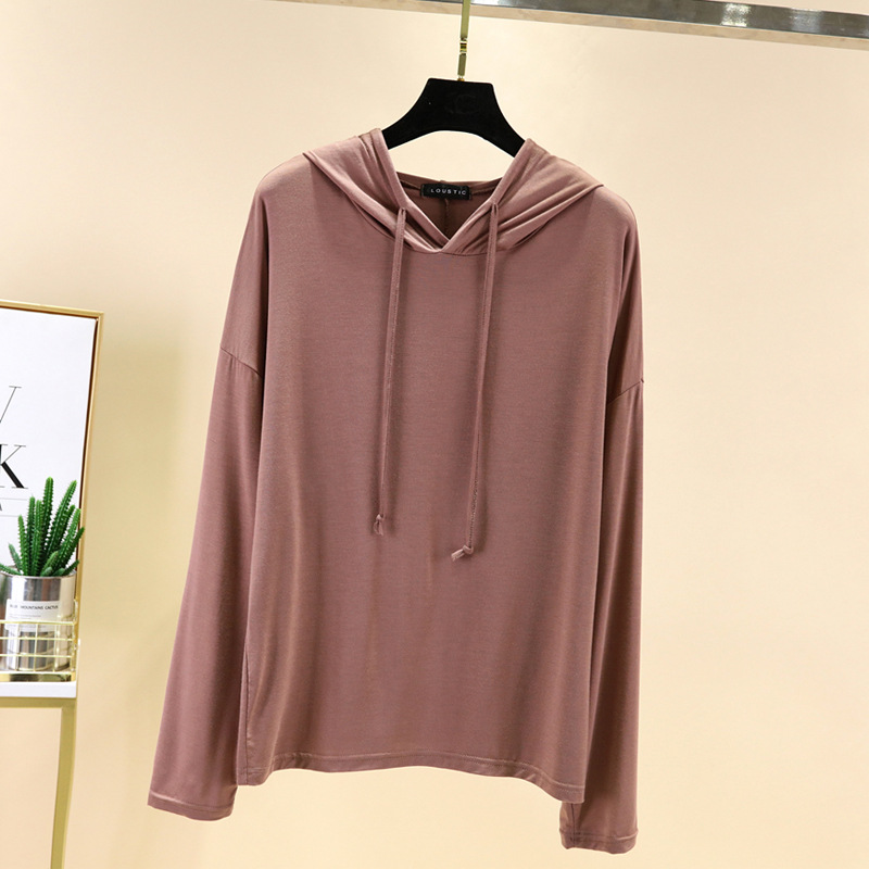후드 태양 보호 의류 모달 태양 보호 셔츠 여성의 여름 겉옷 착용 서양식 긴팔 티셔츠 봄과 가을 얇은 재킷 스웨터 유행