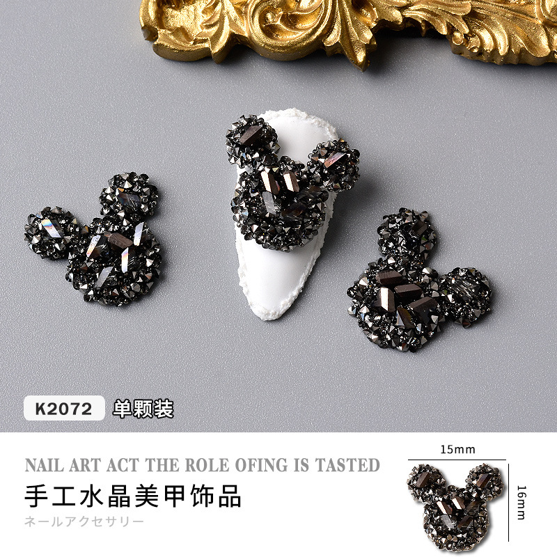 봄 네일 아트 쥬얼리 새로운 일본 크리스탈 보우 수제 전체 다이아몬드 나비 미키 헤드 스테레오 네일 스티커스토어 가기