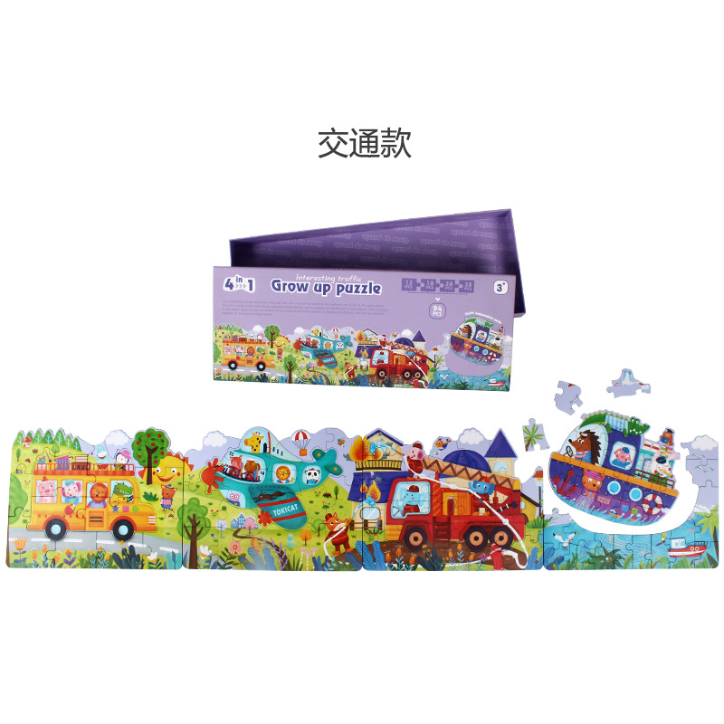 어린이 외계인 4 대 1 고급 나무 퍼즐 어린이 동물 교통 현장 퍼즐 교구 장난감스토어 가기