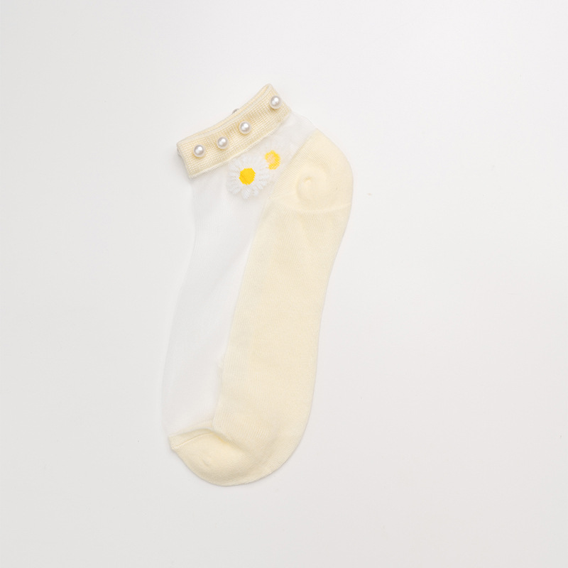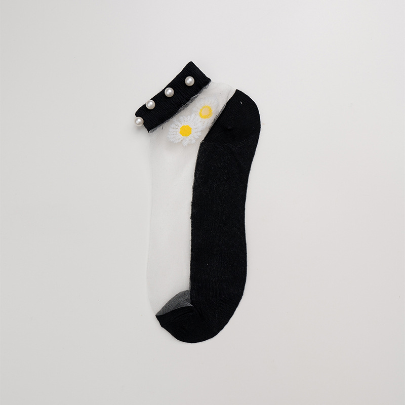 진주 양말 트렌디 사이버 트렌디 데이지 양말 여성용 짧은 양말 여름 얇은 얕은 입 크리스탈 보트 양말 유리 실크 스타킹