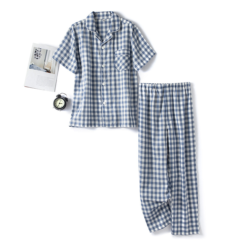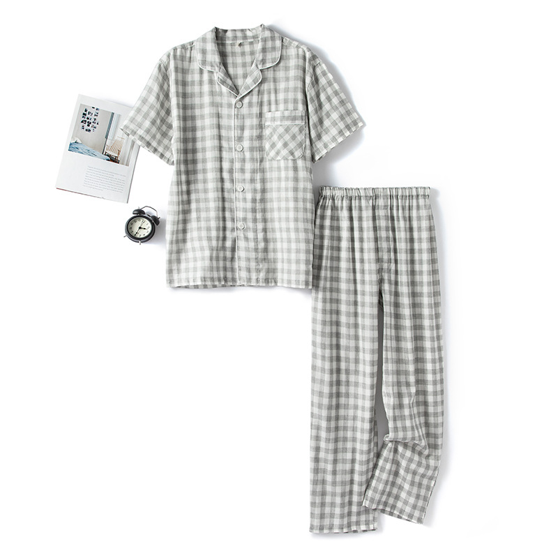 면 커플 더블 거즈 없음 인쇄 큰 긴 짧은 소매 바지 좋은 잠옷 세트 가정 의류 세트 도매