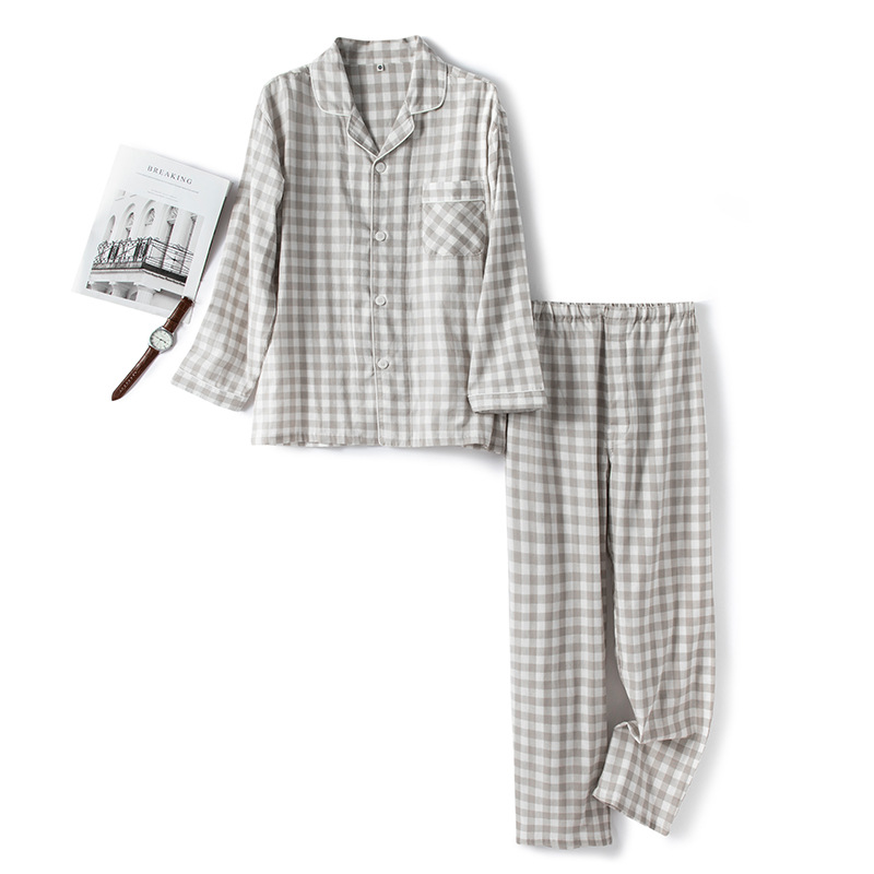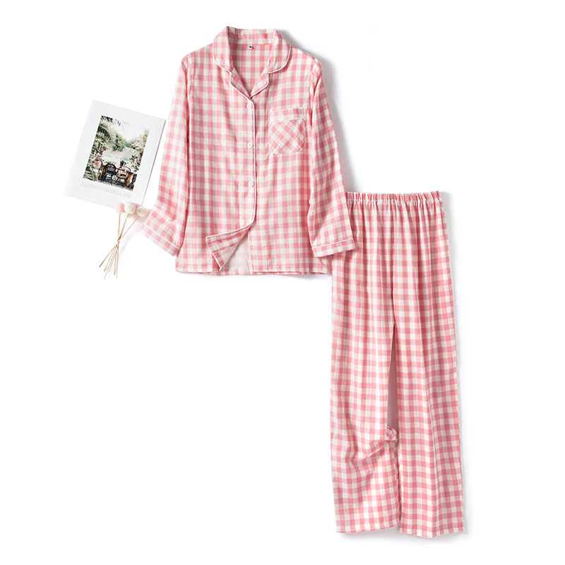면 커플 더블 거즈 없음 인쇄 큰 긴 짧은 소매 바지 좋은 잠옷 세트 가정 의류 세트 도매스토어 가기