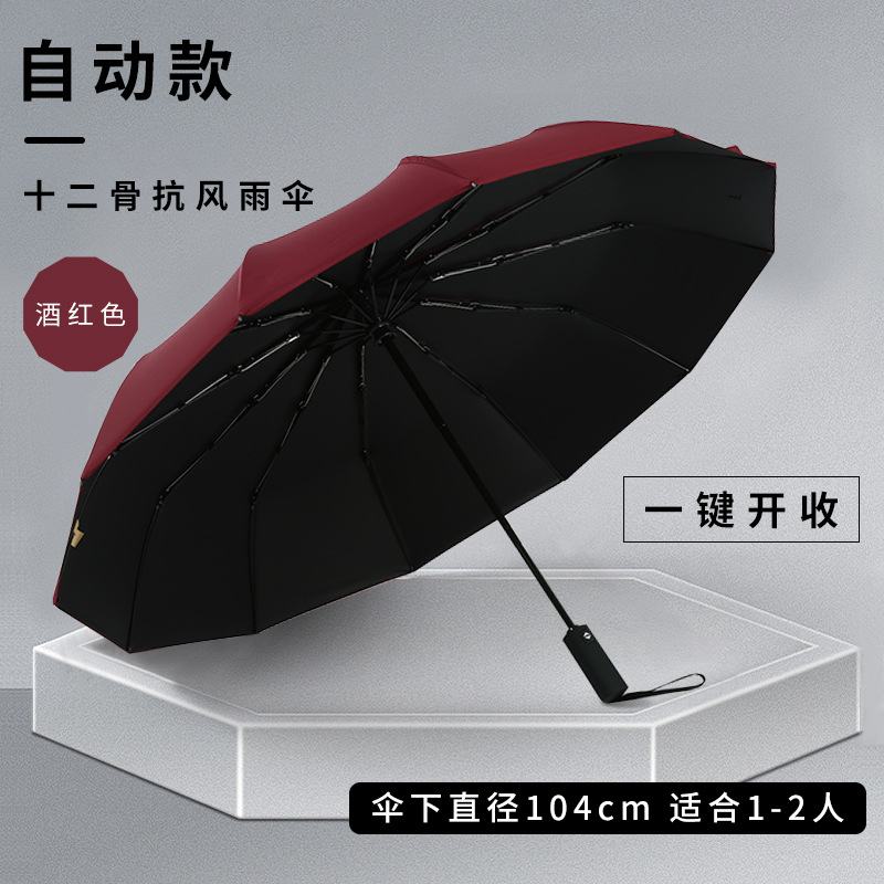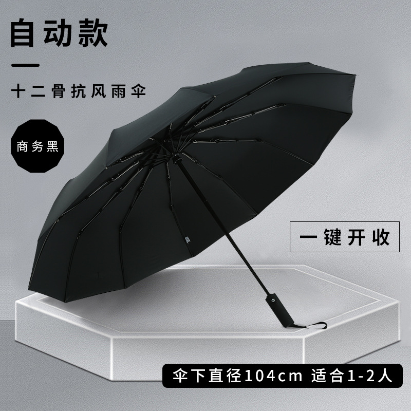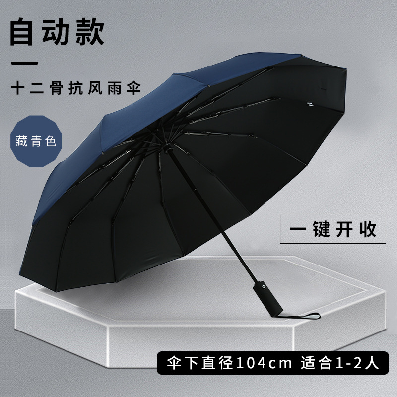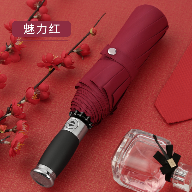 左都同款雨伞全自动男士折叠伞300T铝合金不生锈16骨三折广告伞