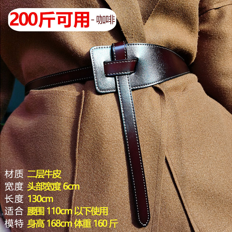슈퍼 플러스 사이즈 정품 가죽 와이드 벨트 원피스 스웨터 허리 매듭 허리 인감이있는 여성용 장식 코트 허리 벨트