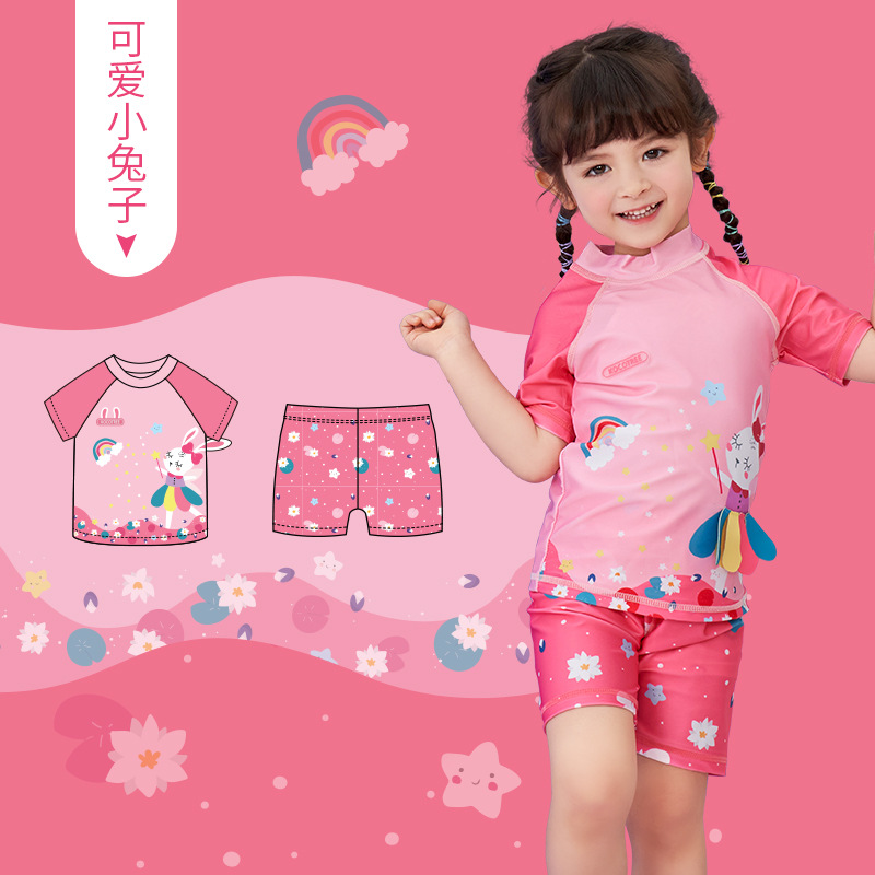 KK 트리 어린이 수영복 분할 소년 소녀 반팔 수영복 온천 귀여운 어린이 큰 어린이 아기 수영복스토어 가기
