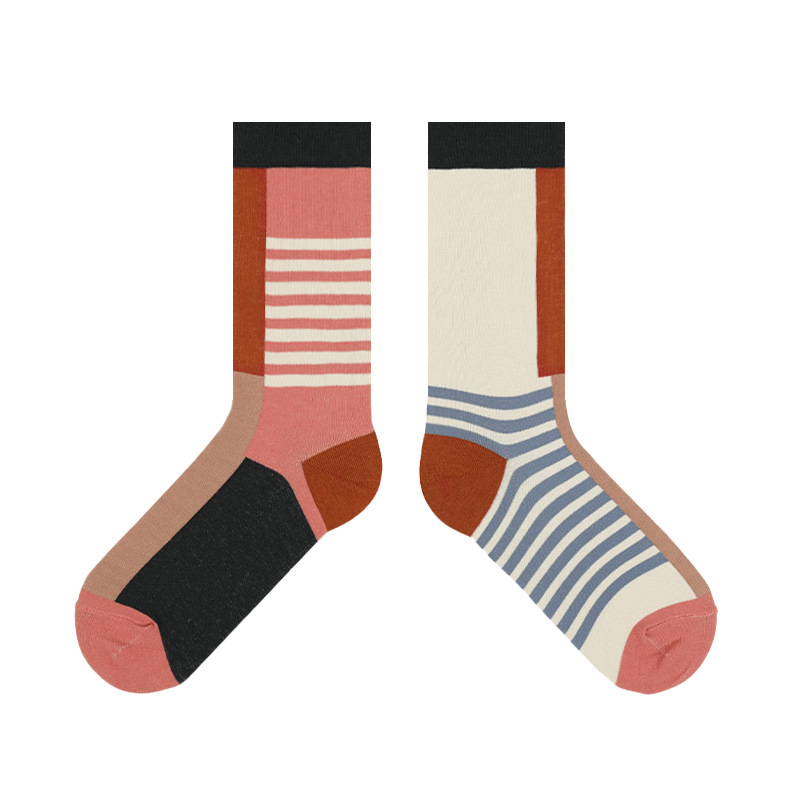봄과 여름 새로운 추측 공간 시리즈 양말 여성의 예술적 남성과 여성의 유행 면 양말 컬러 스티칭 미드 튜브 양말