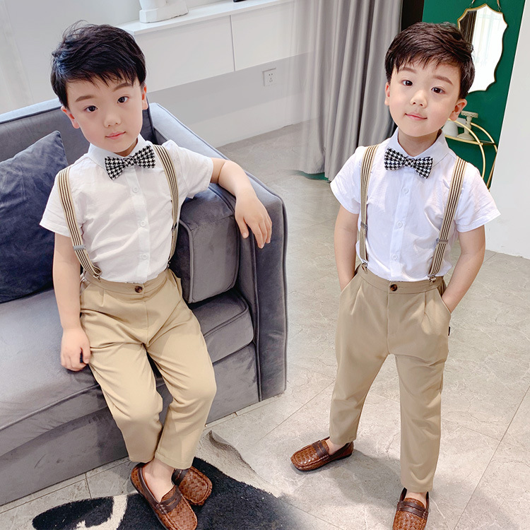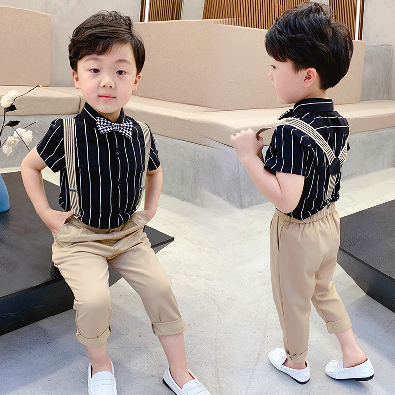봄과 여름 2023 식스 원 퍼포먼스 의류 스트랩 어린이 세트 원피스 영국 스타일 소년과 어린이 착용 반팔 두 조각
