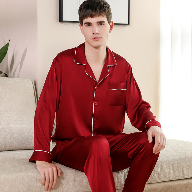 커플 잠옷 봄과 가을 실크 긴 소매 세트 겉옷을 입고 여름 얇은 남자의 아이스 실크 가정 의류 여자의 가을과 겨울