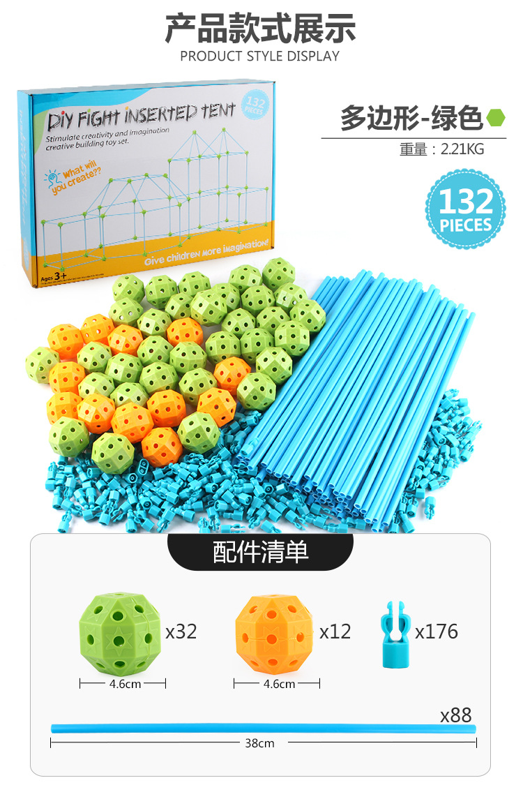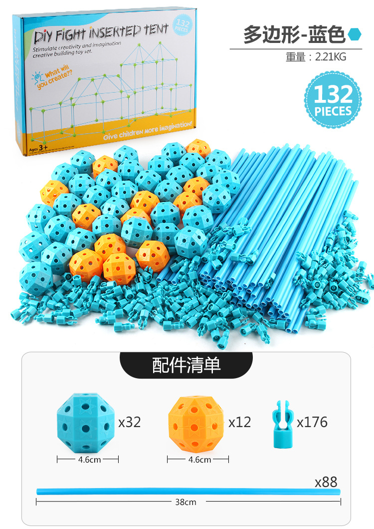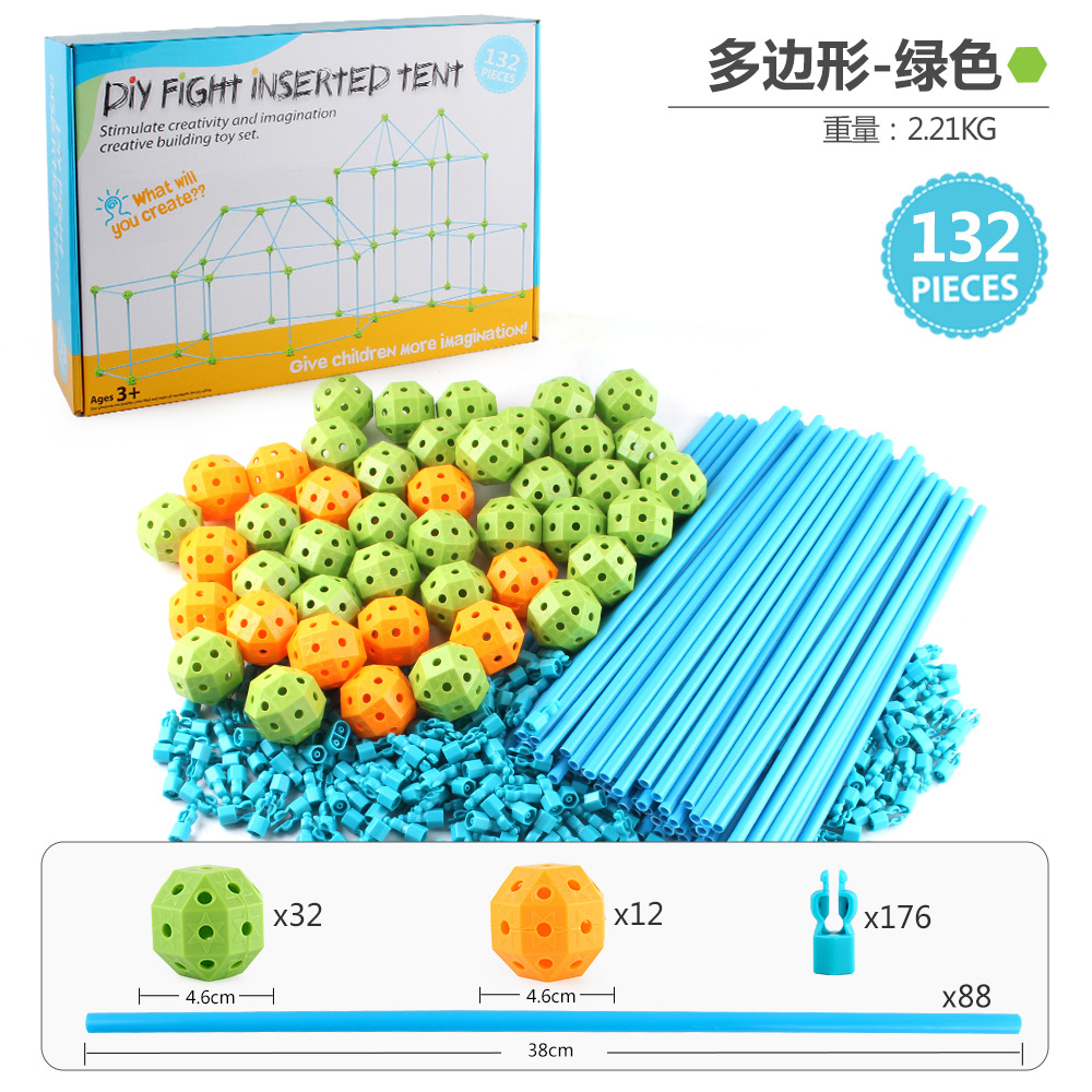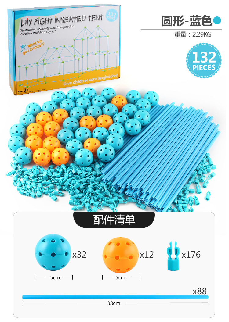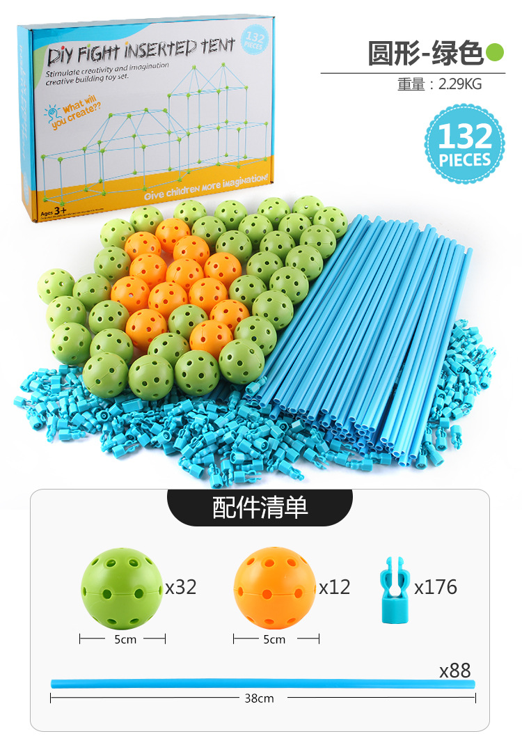508-1DIY拼插帐篷,总数量是132pcs,球是44,支架是88pcs