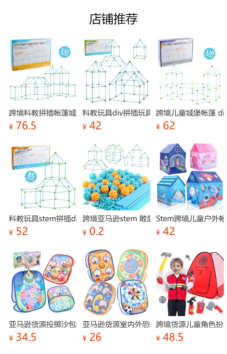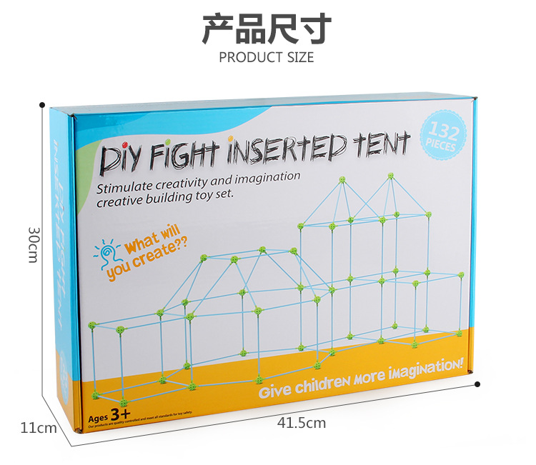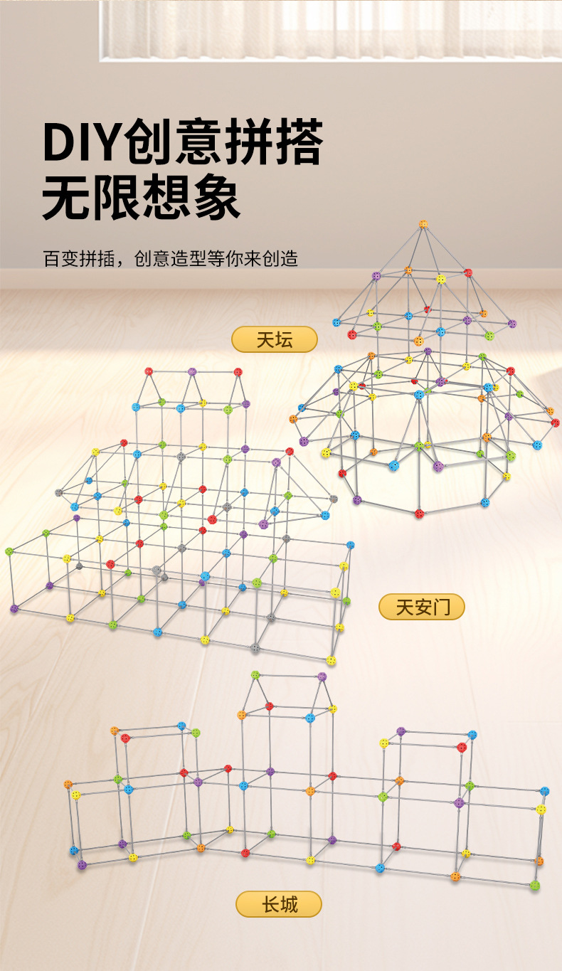 跨境亚马逊stem夜光diy帐篷城堡 儿童建筑城堡插珠帐篷插珠玩具