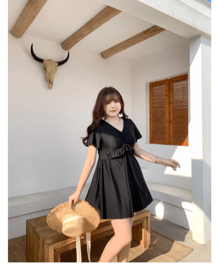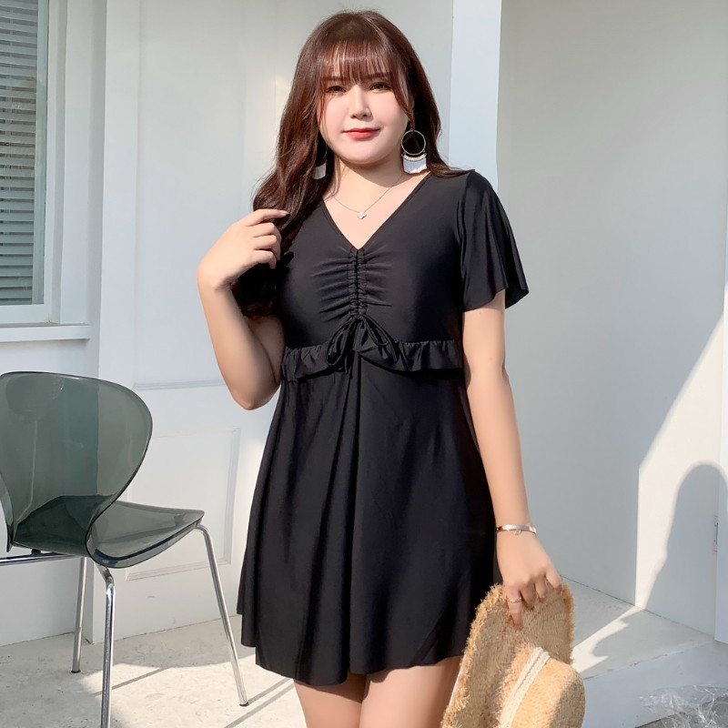 온천 수영복 여성용 원피스 스커트 스타일 고기 커버 블랙 플랫 앵글 보수적 슬리밍 플러스 사이즈 통통한 소녀 플러스 사이즈 수영복 여성용스토어 가기