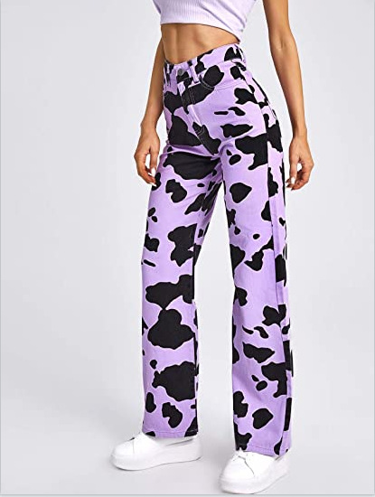 2021 새로운 in 유럽 및 미국 스타일 개인화 된 인쇄 느슨한 스트레이트 청바지 여성 패션 하이 웨이스트 캐주얼 바지