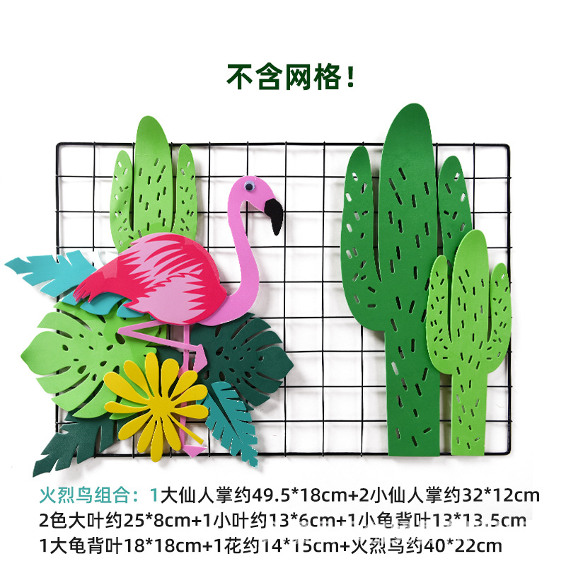 봄과 여름 플라밍고 녹색 식물 동물 거품 스테레오 벽 스티커 유치원 장식 보드 신문 문화 배열 재료 용품