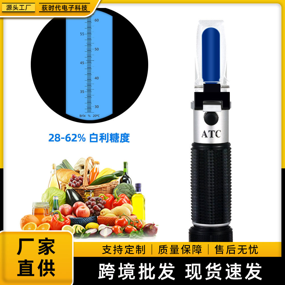折射计也叫折光仪,当光线通过不同浓度的液体时会产生不同的折光角度,通过比较折光角度得出液体浓度值,折光仪据此原理设计而成。本厂生产销售的手持糖度计系列产品,具有各种测量范围。结构简单防震、操作携带方便、视野清晰、等优点,可满足不同客户的使用要求.产品价格低廉批零兼可,质量可靠,品种多样。
