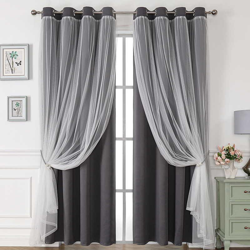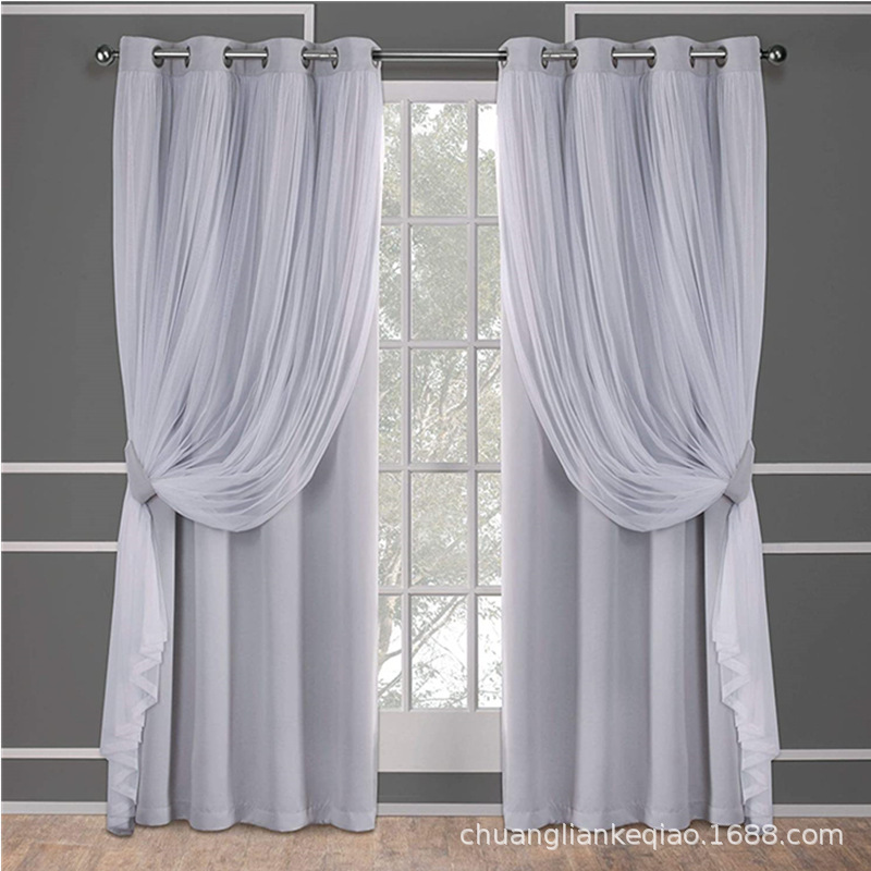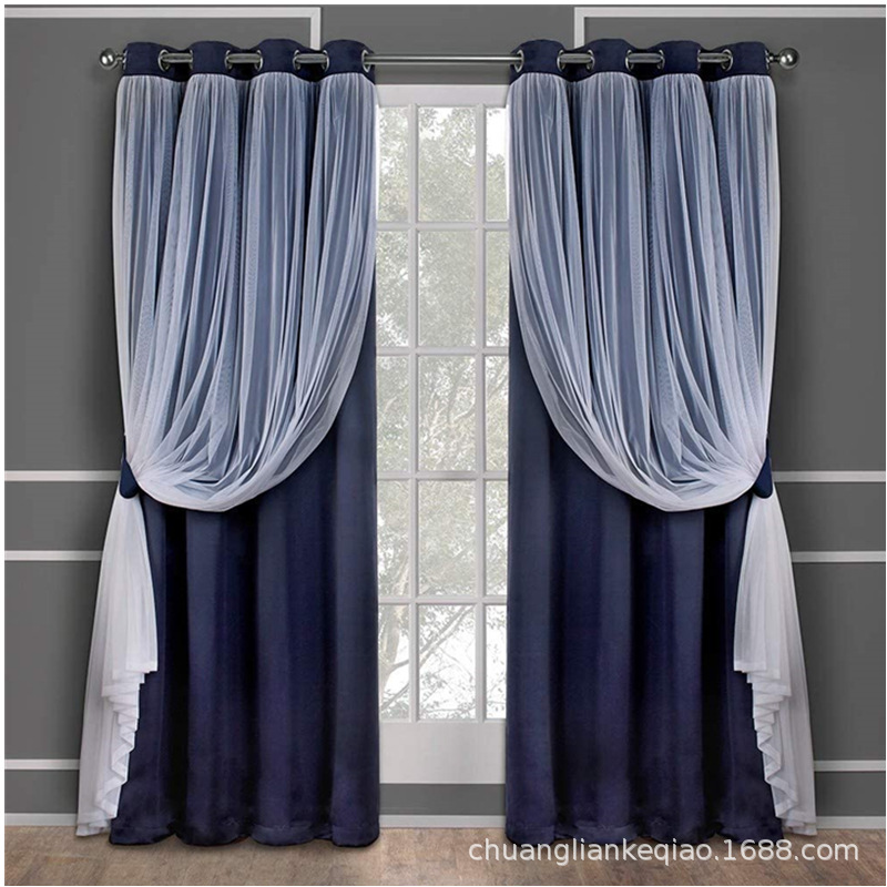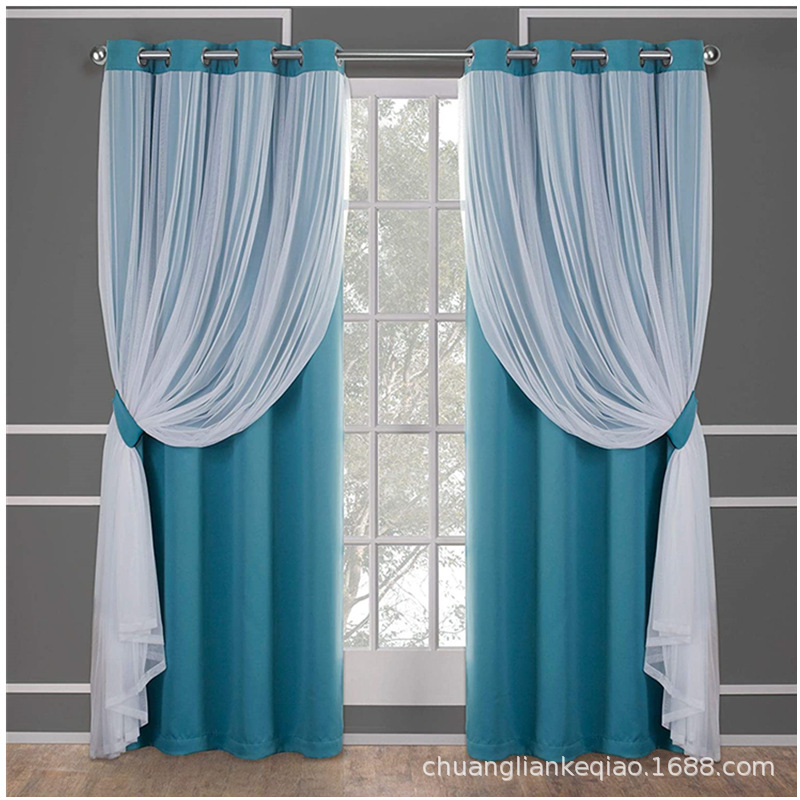 Qiao Zhuang 국경 독점 아마존 대외 무역 커튼 레이스 더블 레이어 음영 커튼 마감 도매 커튼스토어 가기