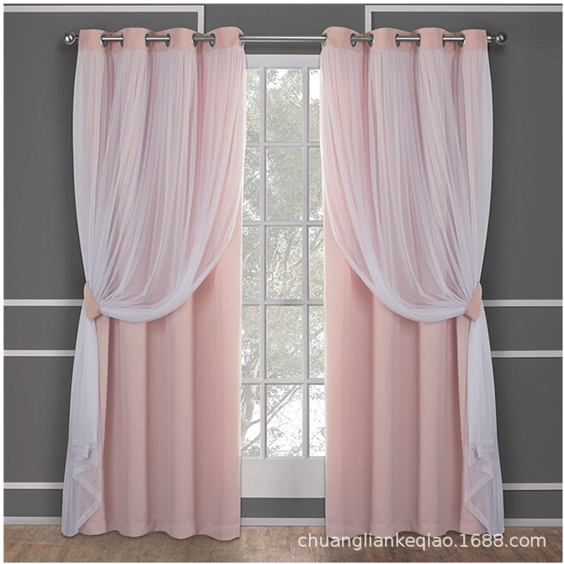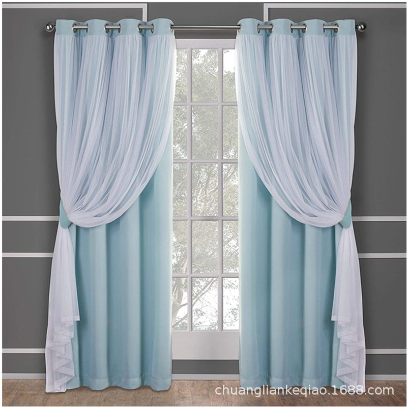 Qiao Zhuang 국경 독점 아마존 대외 무역 커튼 레이스 더블 레이어 음영 커튼 마감 도매 커튼