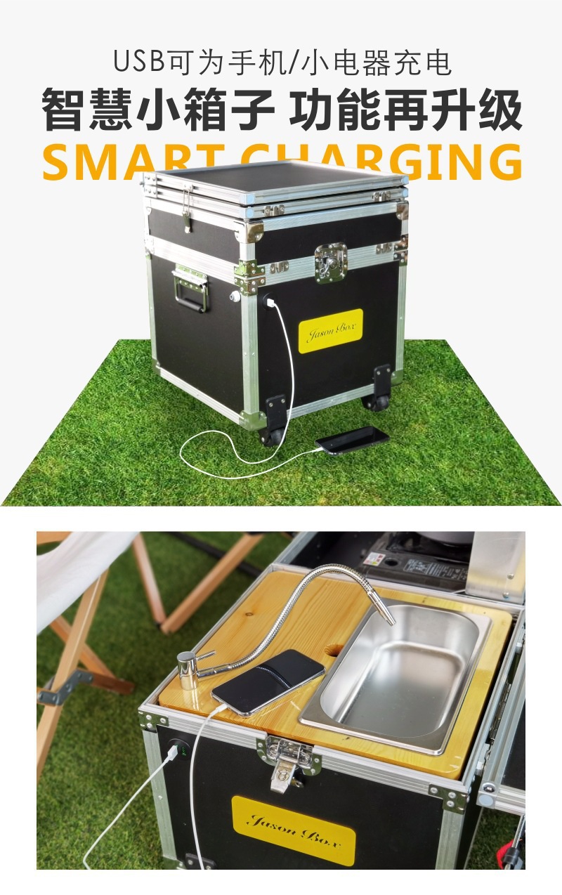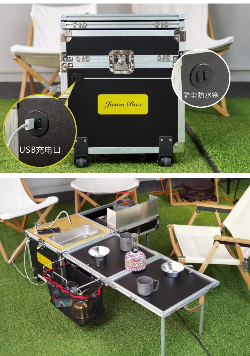 Jensen 야외 모바일 주방 전체 기능 동반 작은 주방 상자 캠핑 야생 밥솥 접이식 테이블 자율 주행 차량 표준
