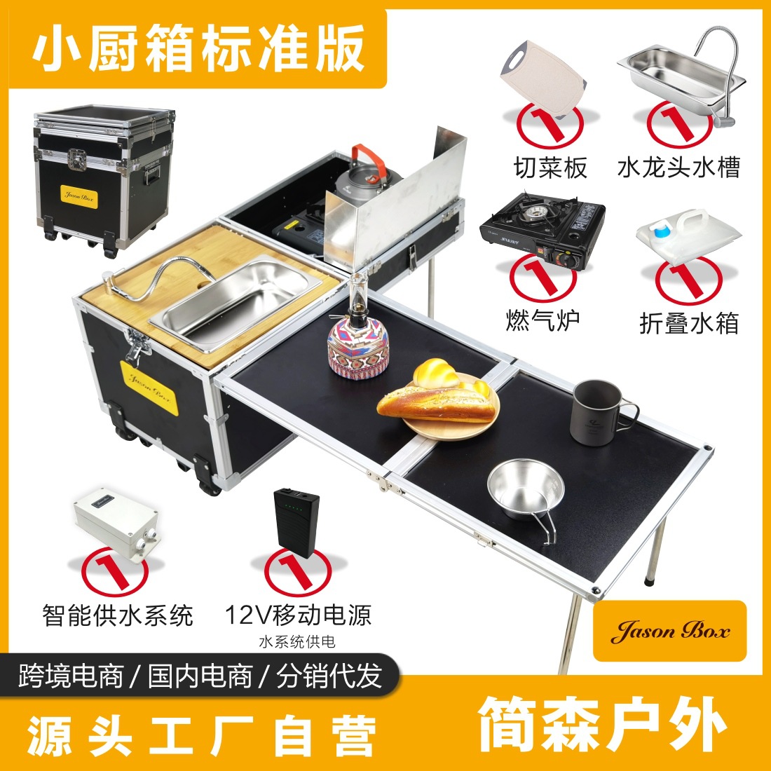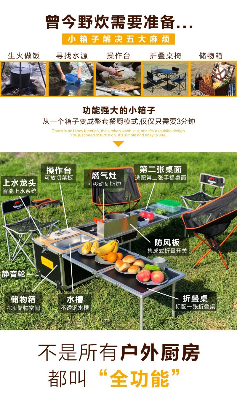 Jensen 야외 모바일 주방 전체 기능 동반 작은 주방 상자 캠핑 야생 밥솥 접이식 테이블 자율 주행 차량 표준스토어 가기