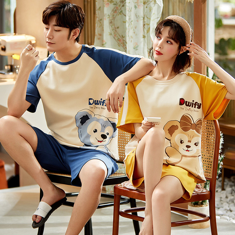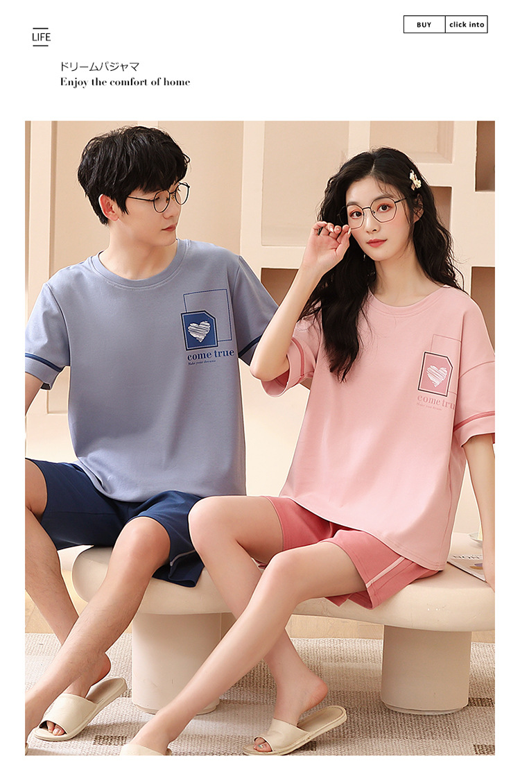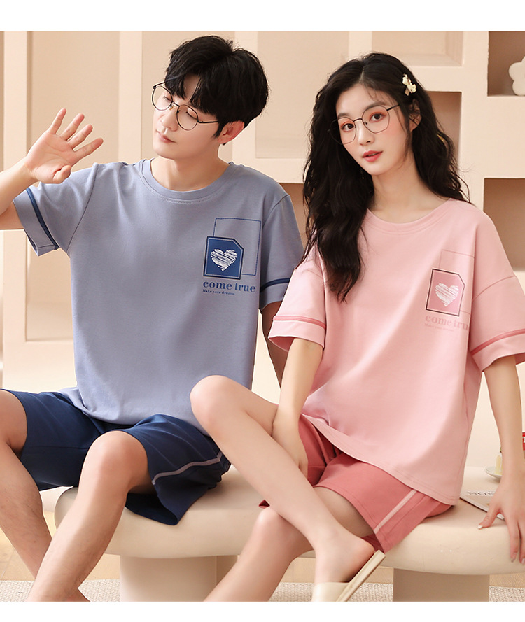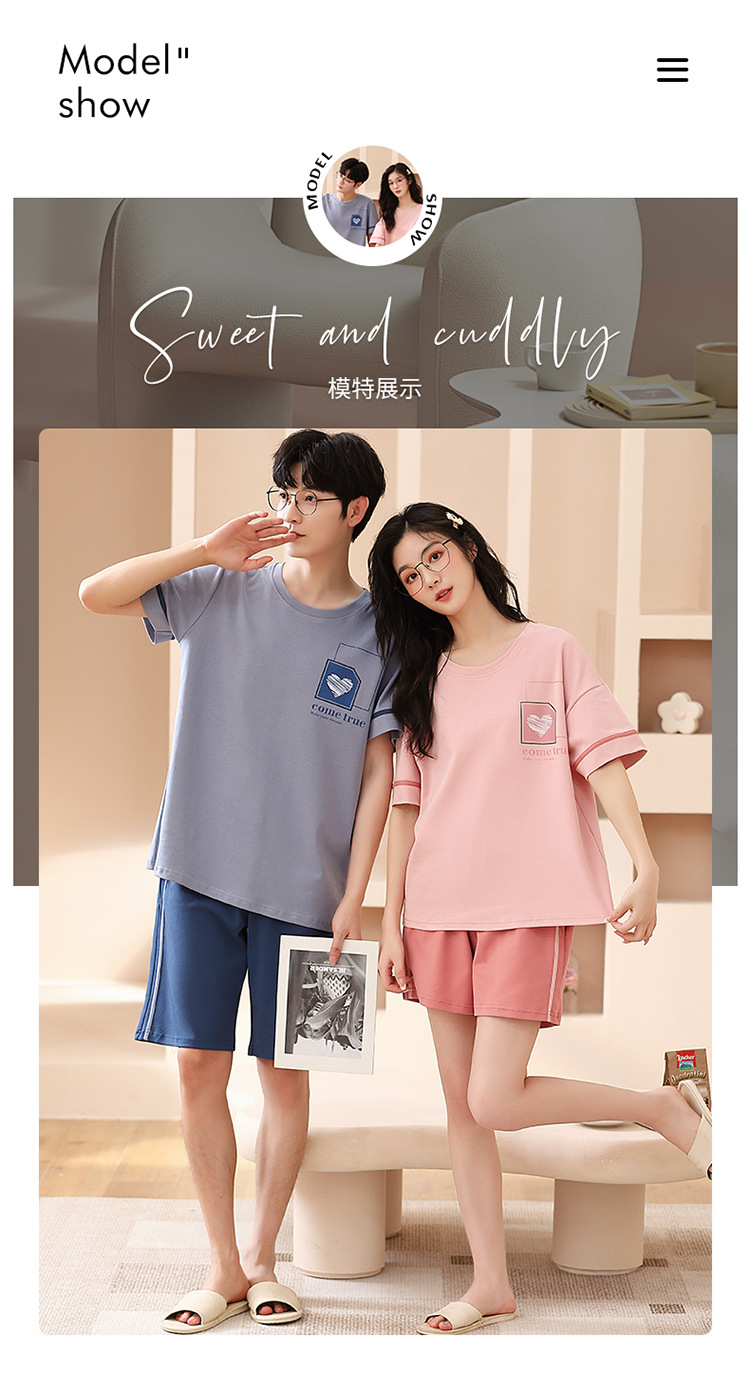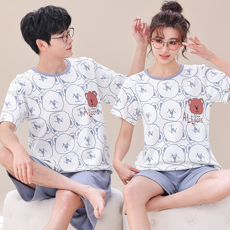 여름 커플 잠옷 여성 빗질 면화 반팔 반바지 제조 업체 도매 한국어 버전 간단한 남자의 가정복 세트스토어 가기