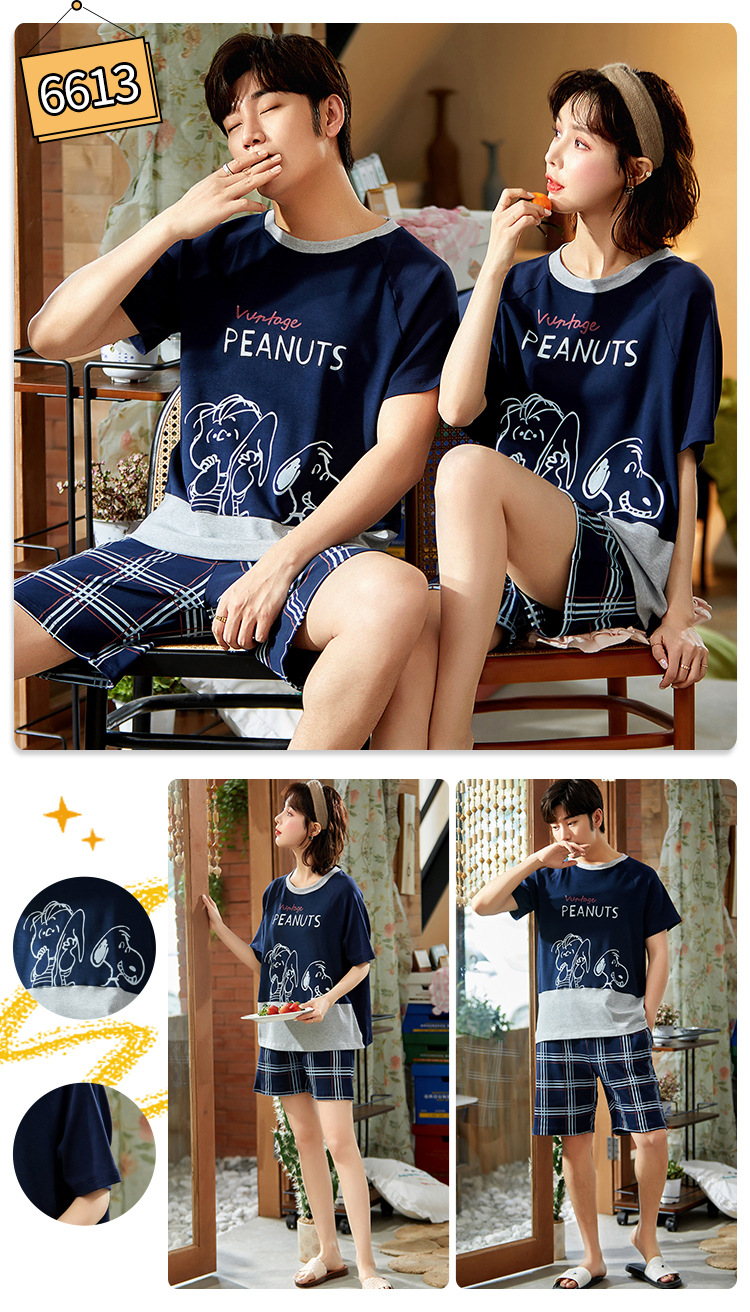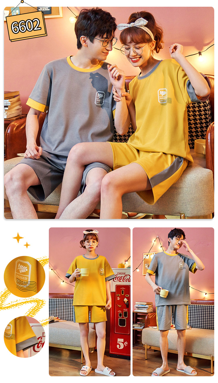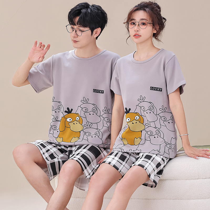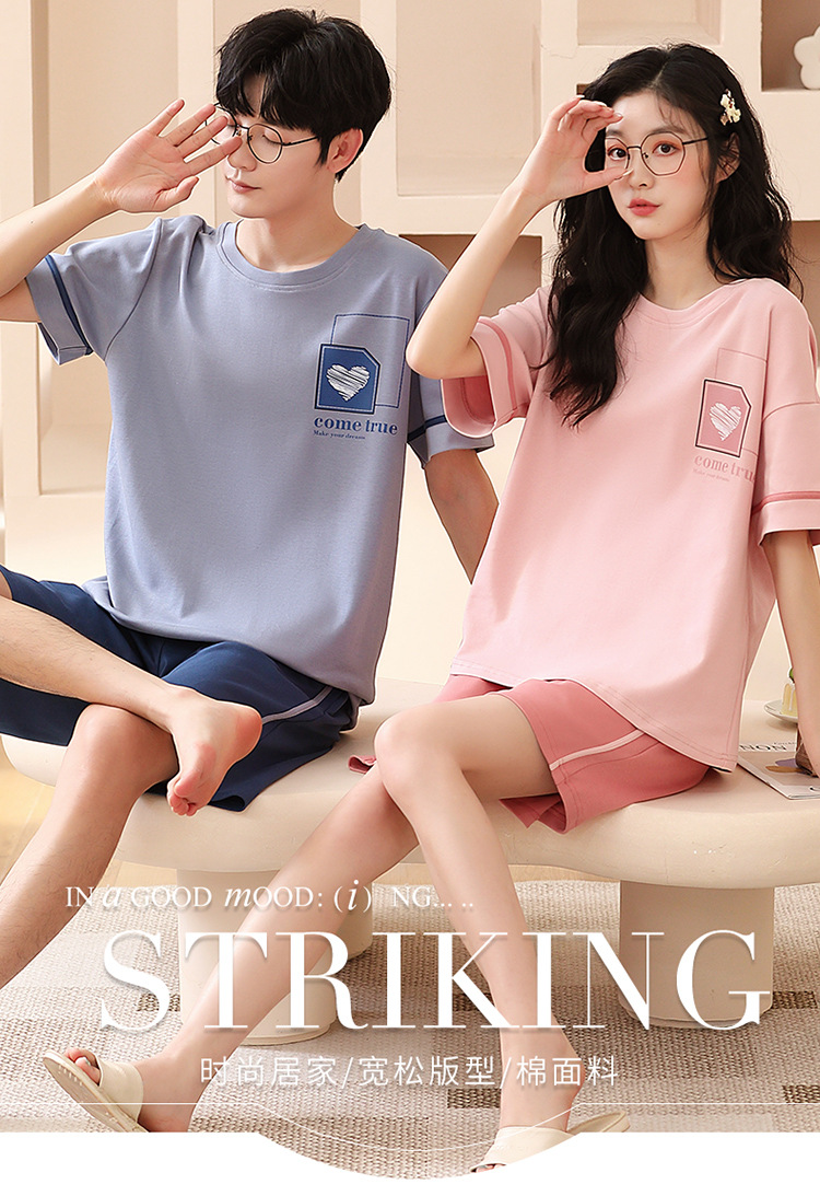 여름 커플 잠옷 여성 빗질 면화 반팔 반바지 제조 업체 도매 한국어 버전 간단한 남자의 가정복 세트스토어 가기
