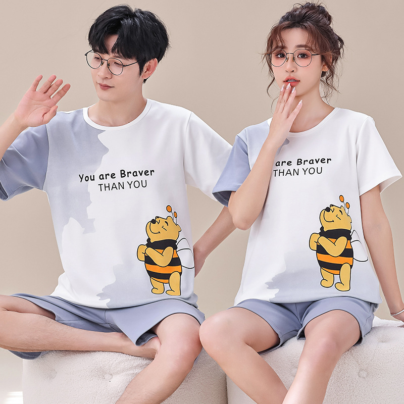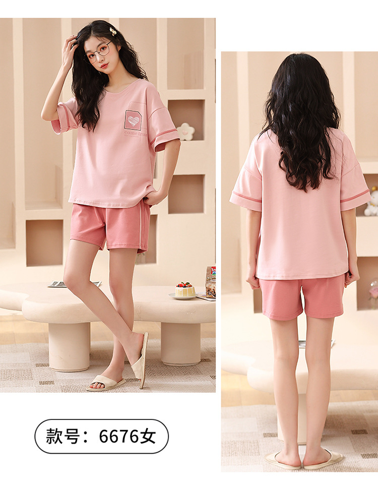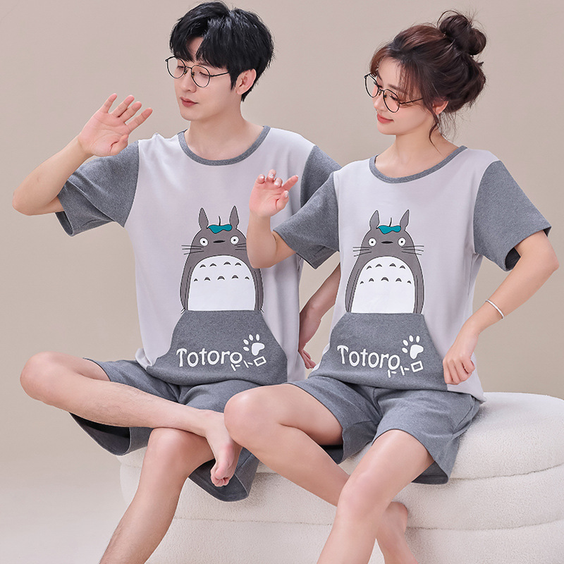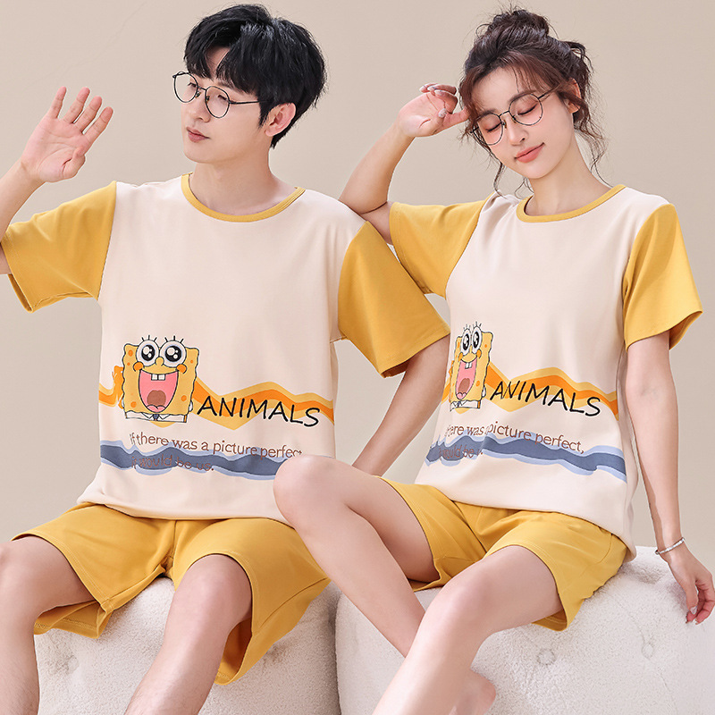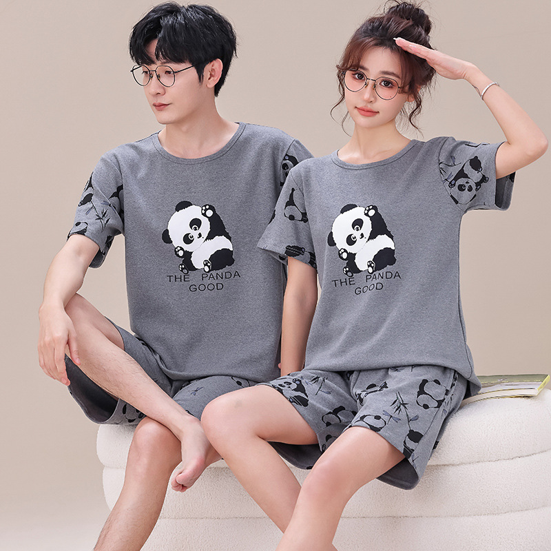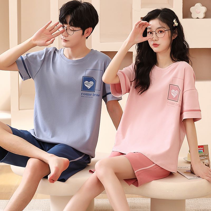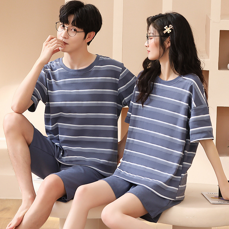 여름 커플 잠옷 여성 빗질 면화 반팔 반바지 제조 업체 도매 한국어 버전 간단한 남자의 가정복 세트