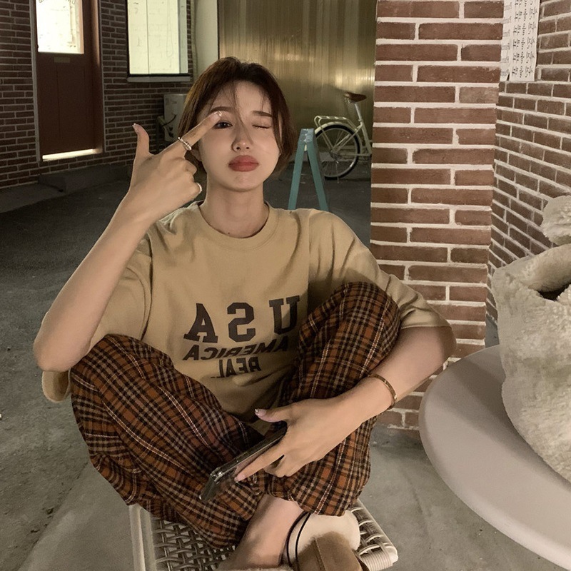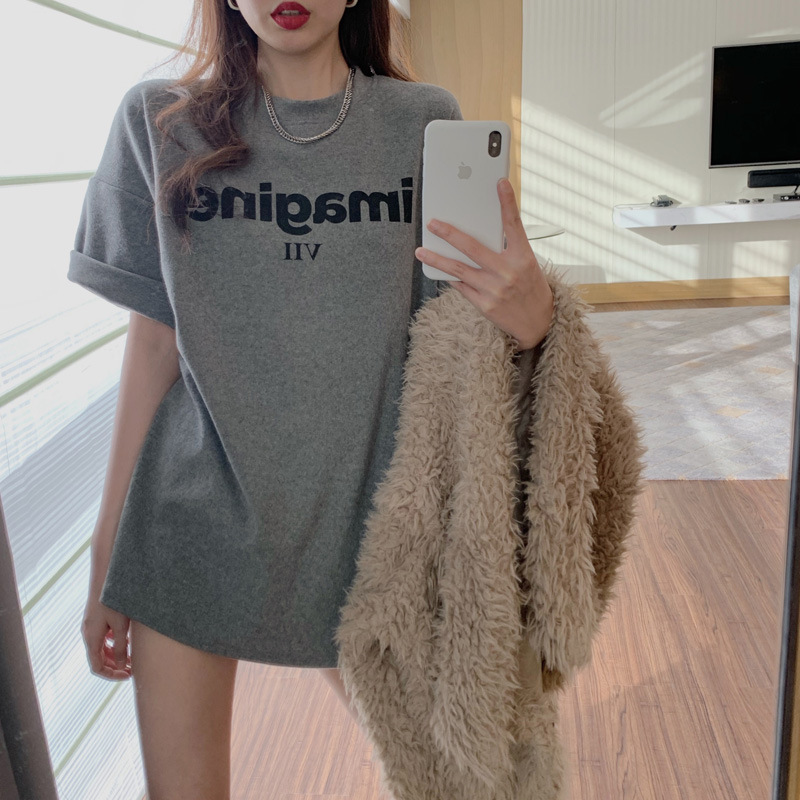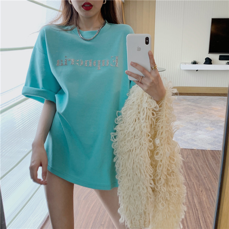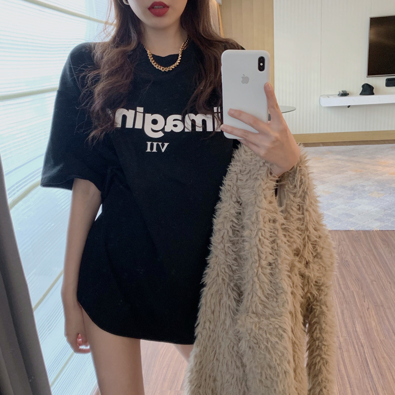 웃는 얼굴 인쇄 느슨한 반팔 티셔츠 여성 봄 여름 새로운 캐주얼 Bottoming 셔츠 여성 라운드 넥 탑 드롭 배송
