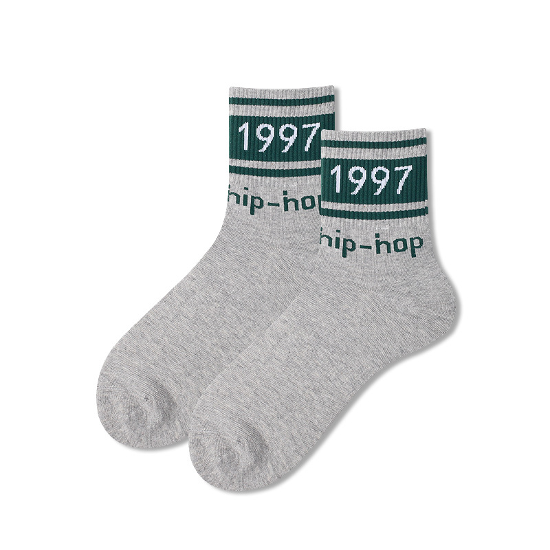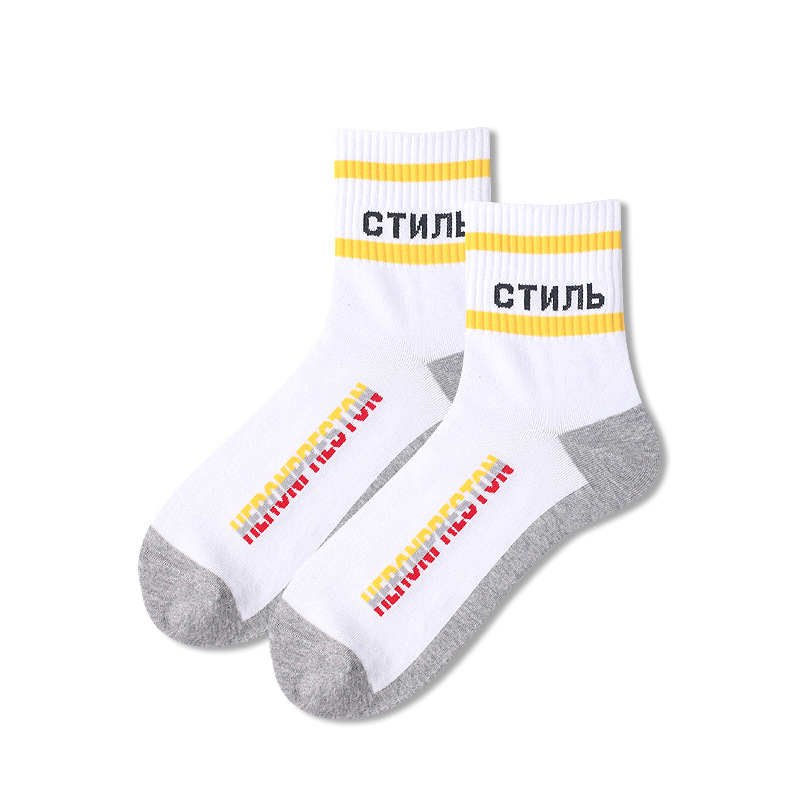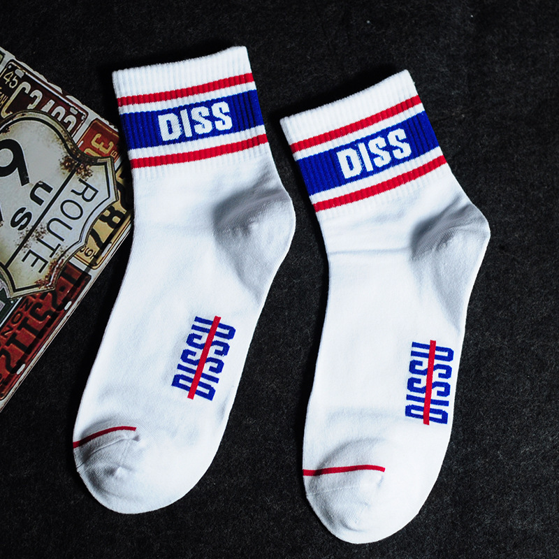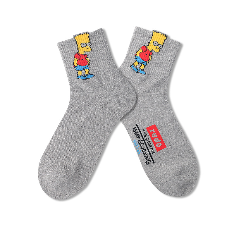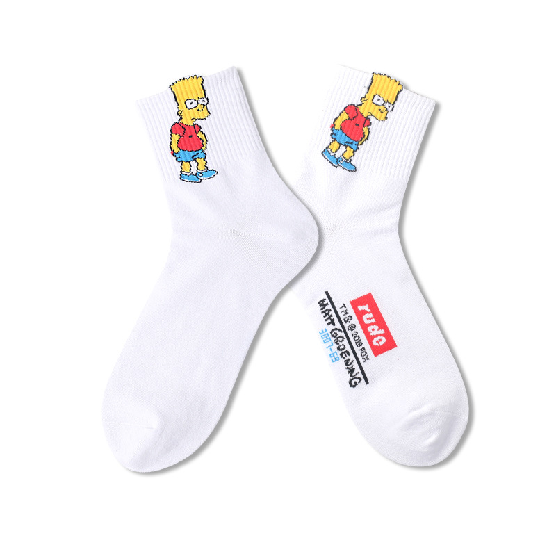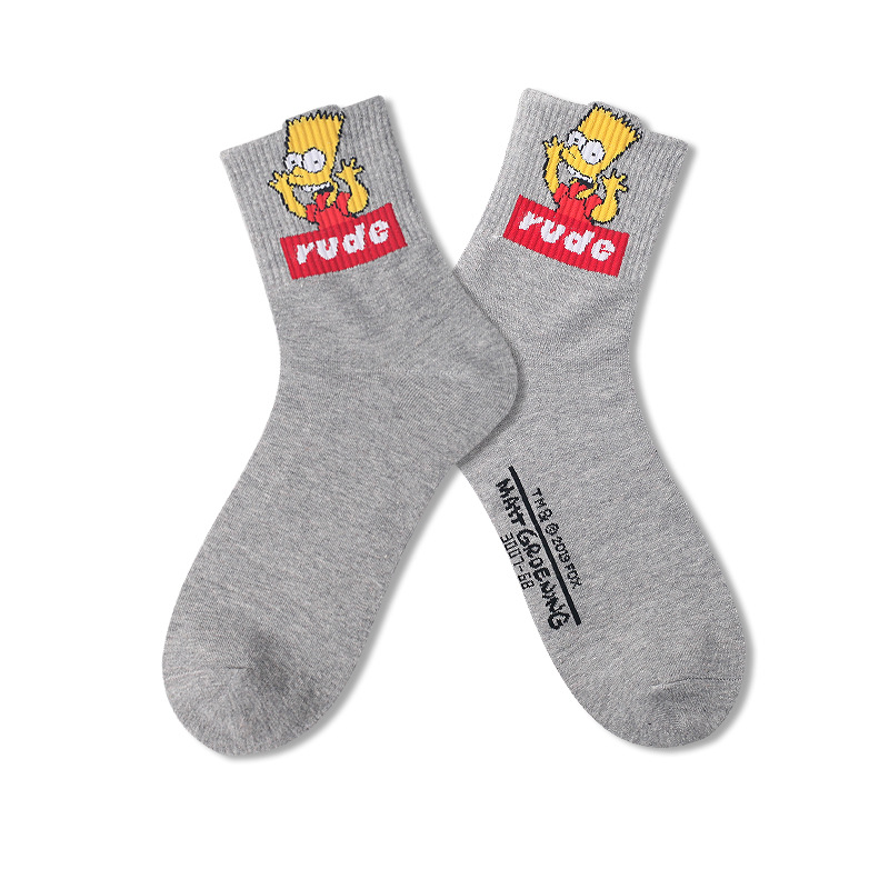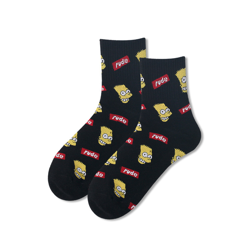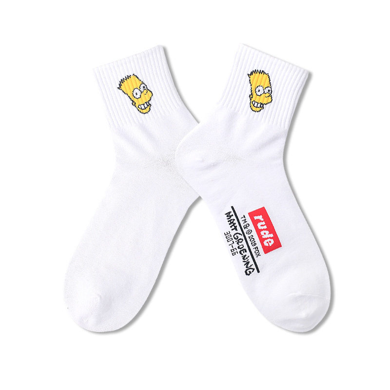 양말 남성용 트렌디 한 심슨 머리 양말 편지 면 양말 통기성 유럽과 미국 거리 스마일 편지 스포츠 미드 튜브 양말
